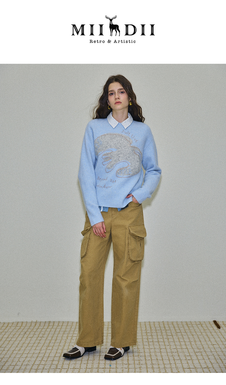 谜底套头针织衫长袖2025年冬季新品蓬松保暖亲肤毛衣女254MZ1858
