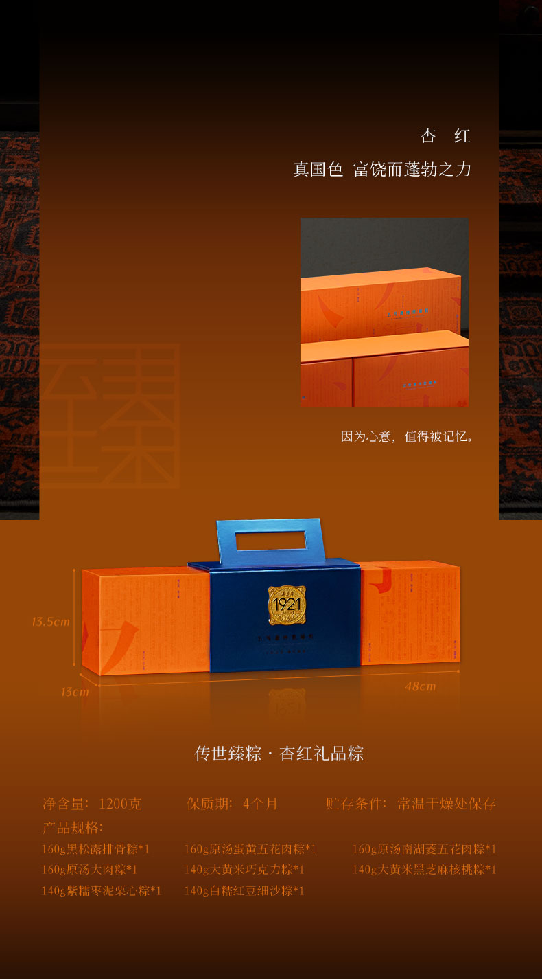 五芳斋五芳杏红粽子礼盒1200g【端午】KY