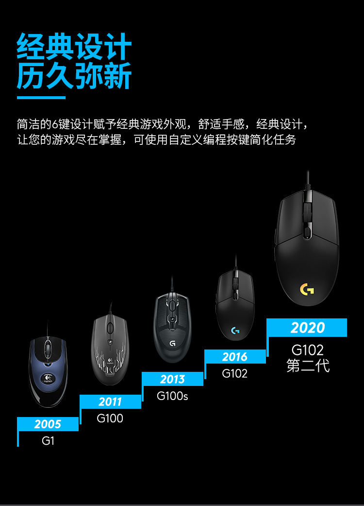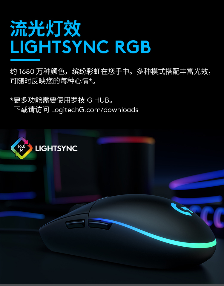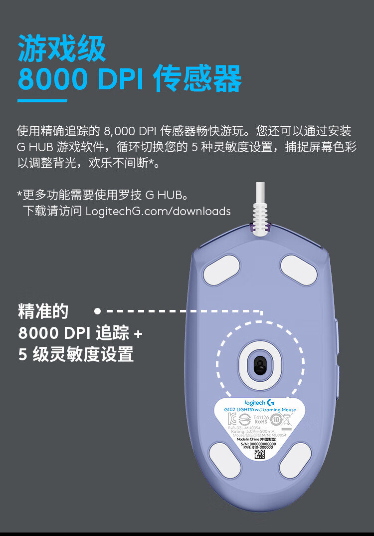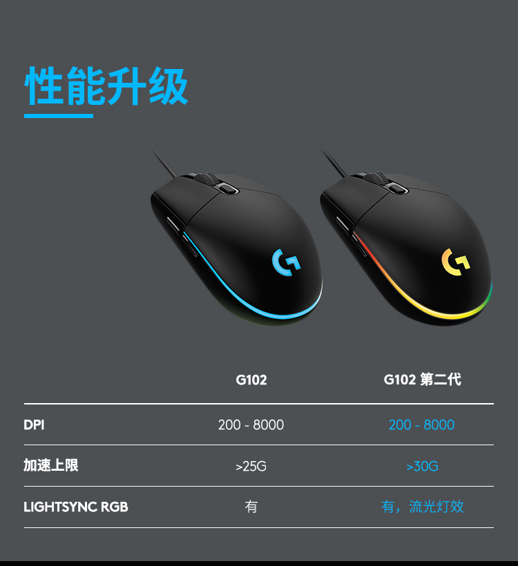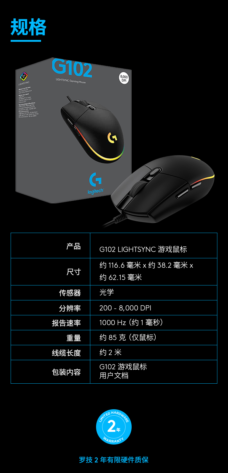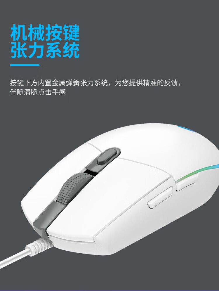 积分免费兑:罗技(G)G102 有线游戏鼠标 白色 RGB灯效 吃鸡鼠标 绝地求生 轻量化设计 G102第二代