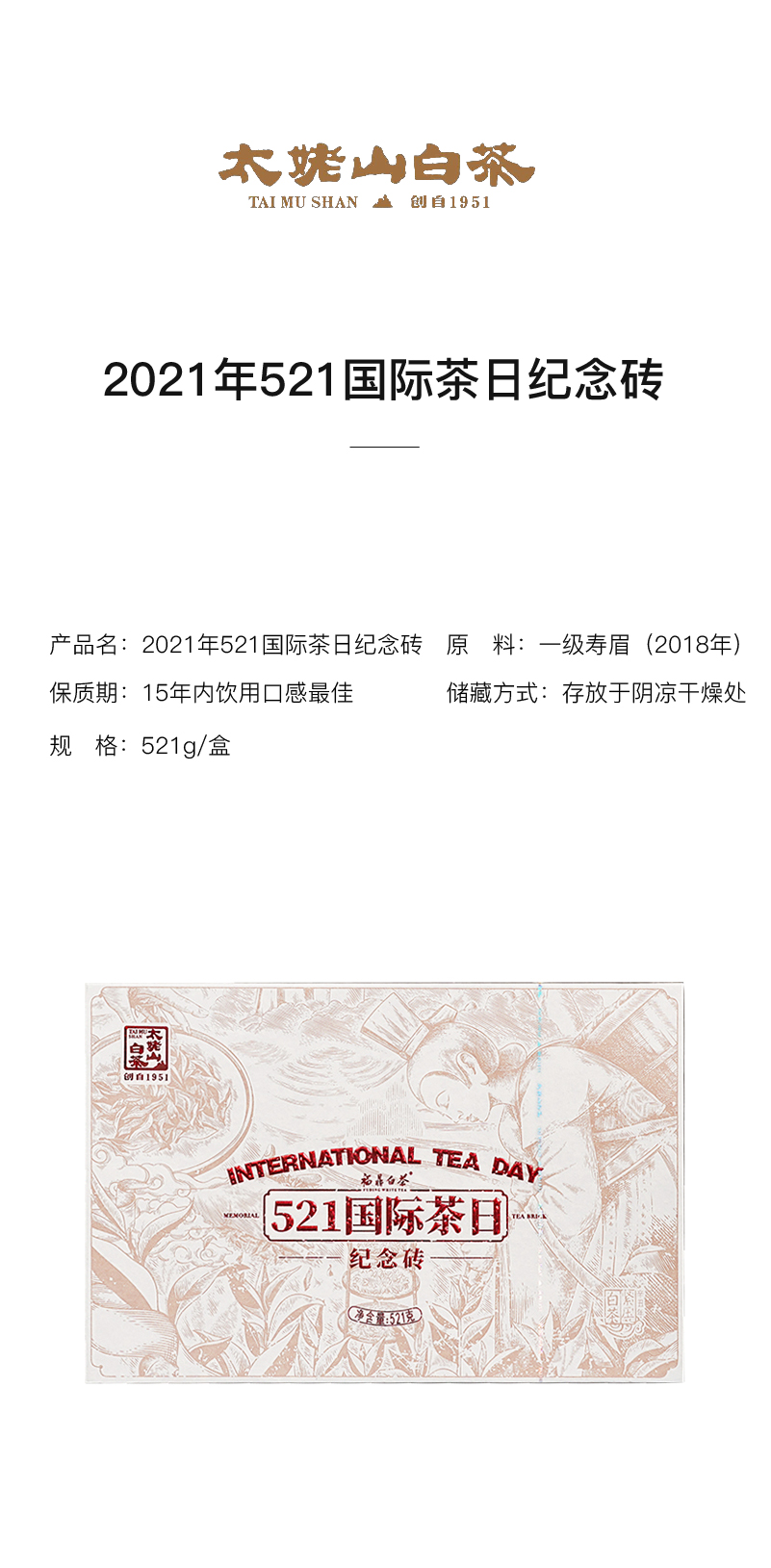 | 产品名称 | 太姥山2021年521国际茶日纪念砖 |