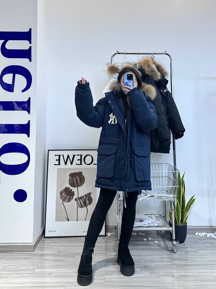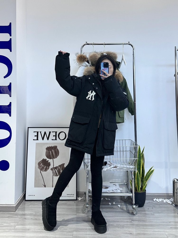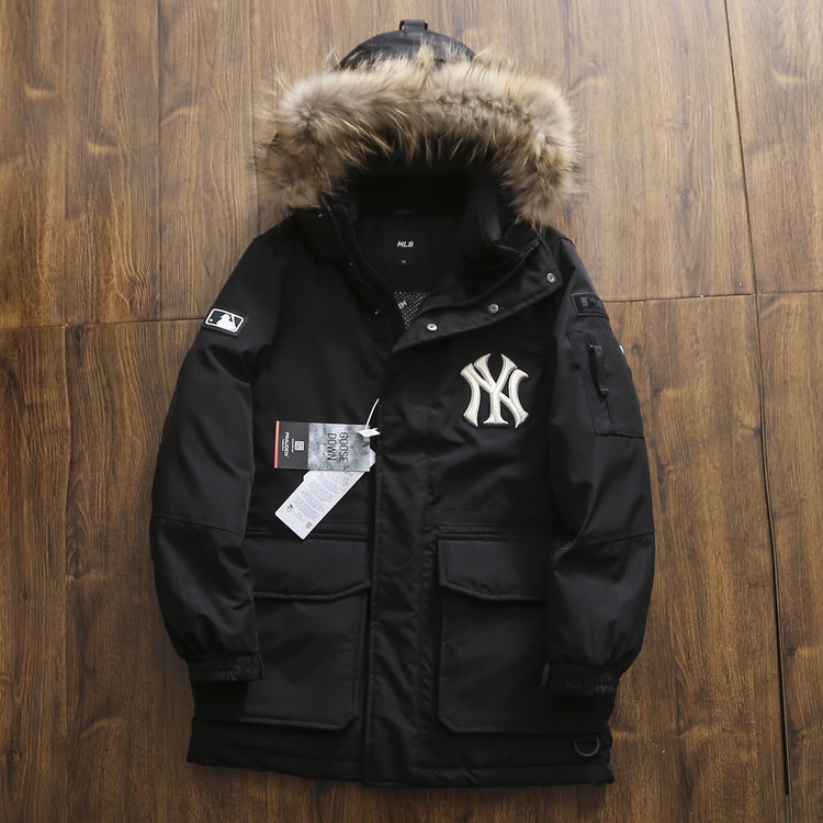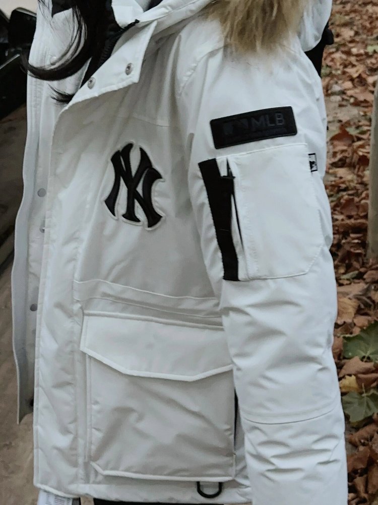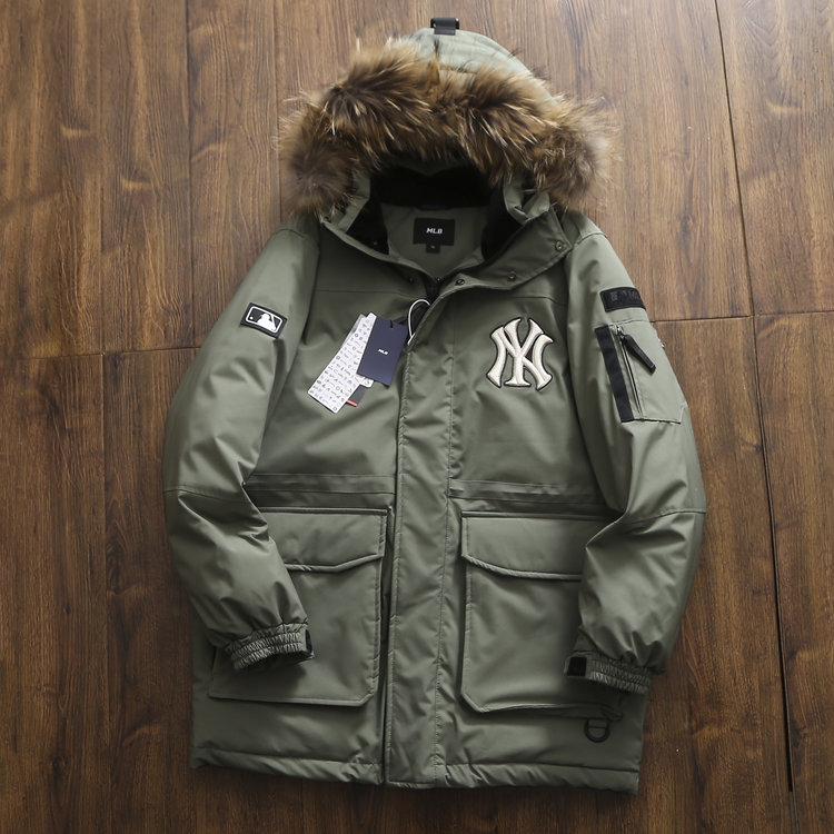 MLB纯色徽标毛领连帽羽绒服 情侣同款硬核工装风 经典百搭