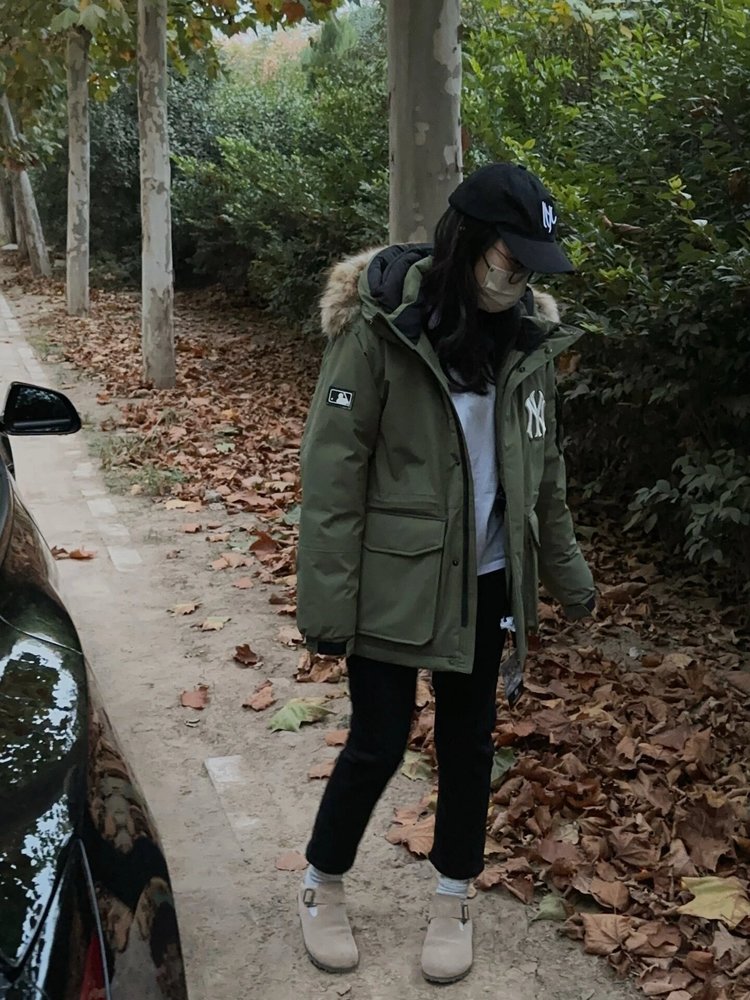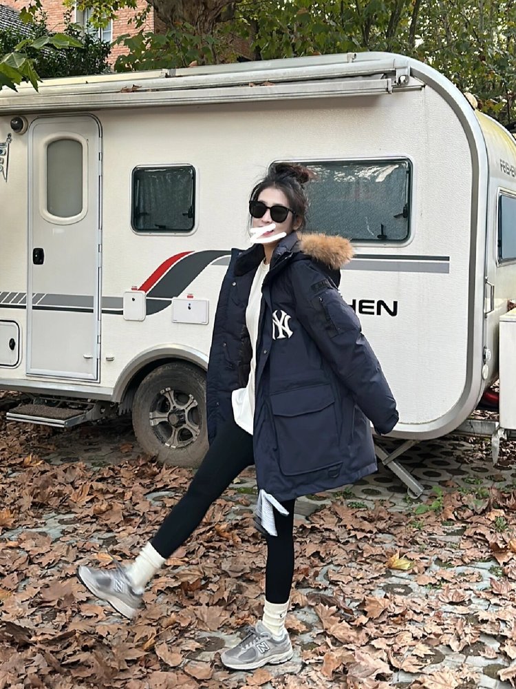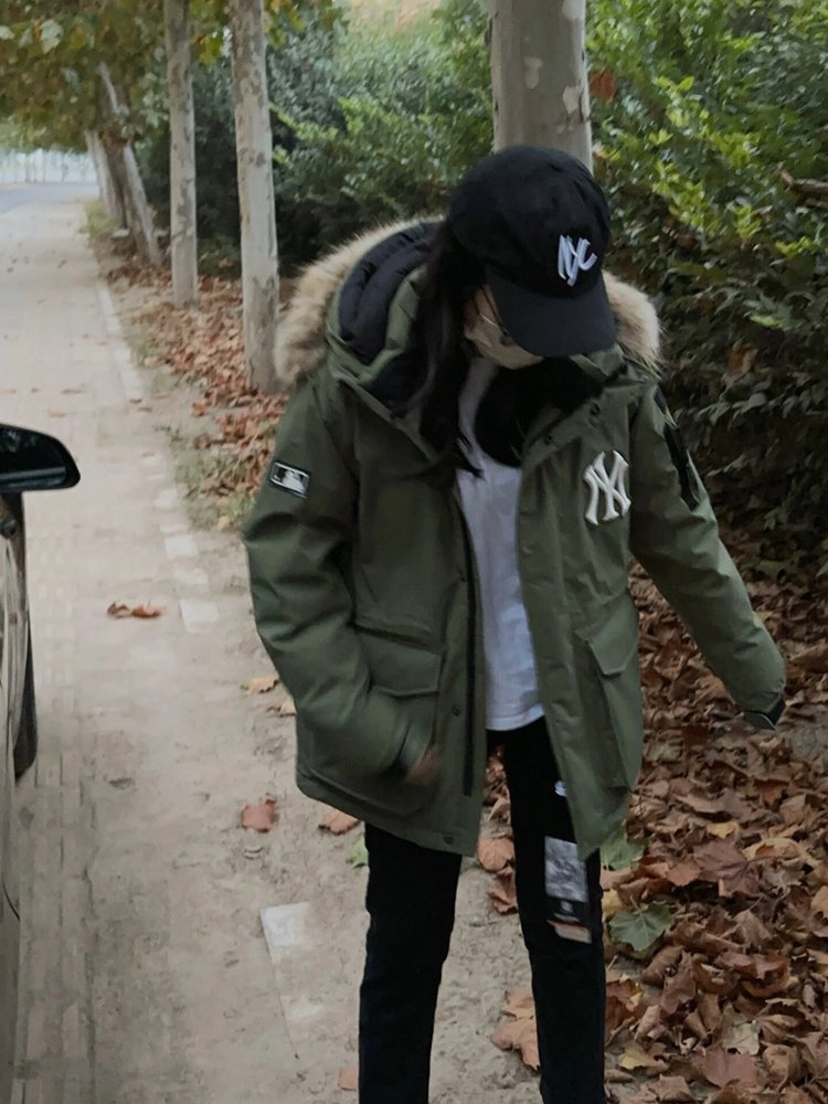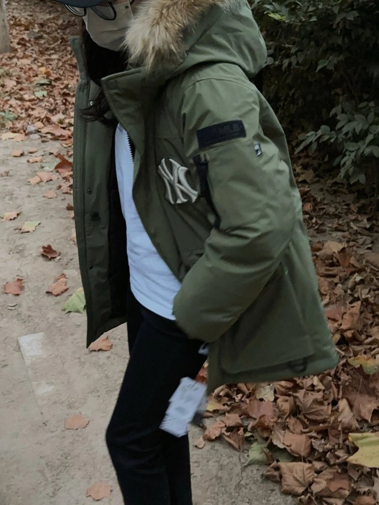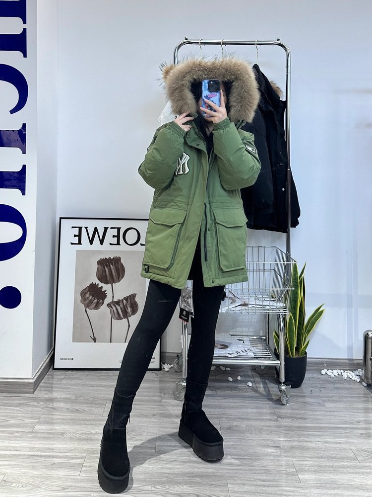 MLB纯色徽标毛领连帽羽绒服 情侣同款硬核工装风 经典百搭