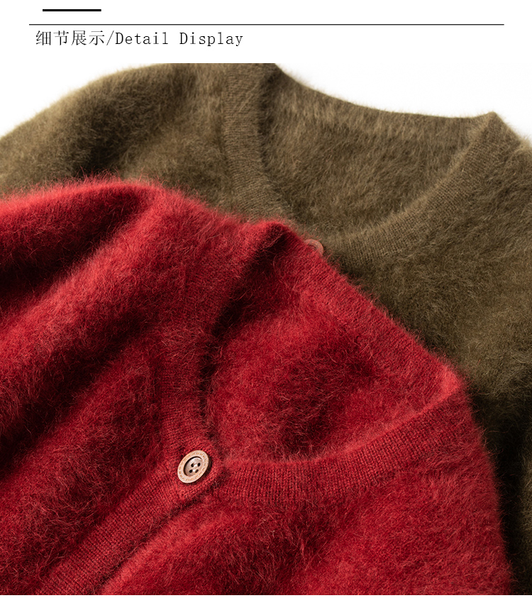 小马刺绣~丝羊毛圆领立体刺绣提花高级感撞色开衫女毛衣针织衫