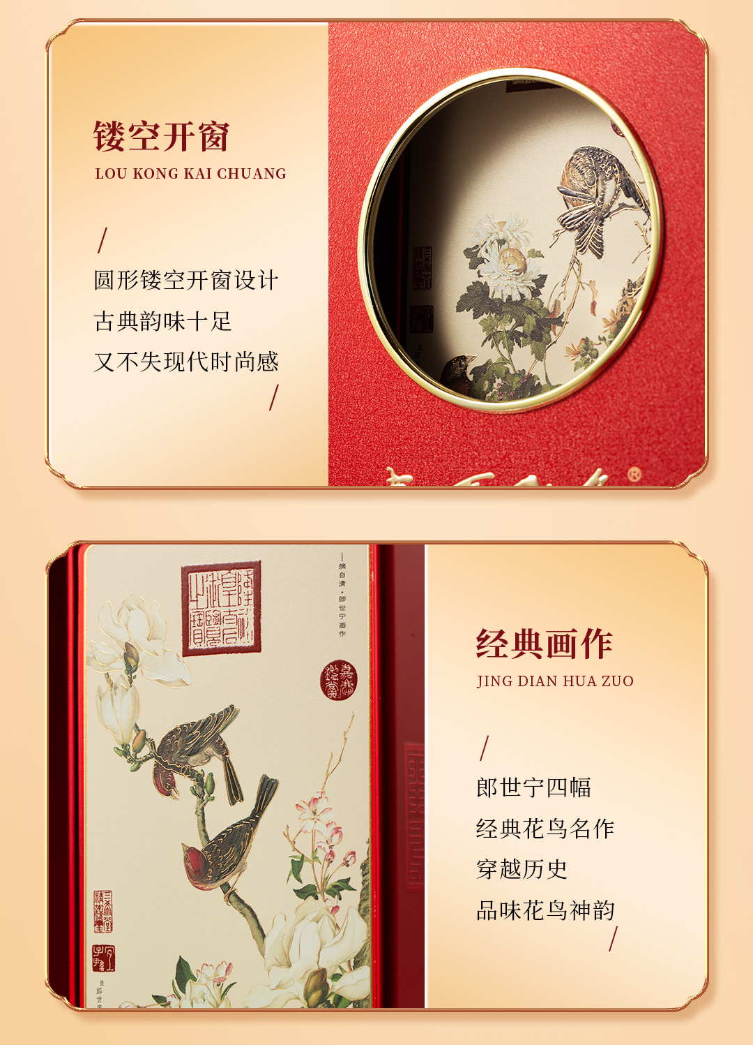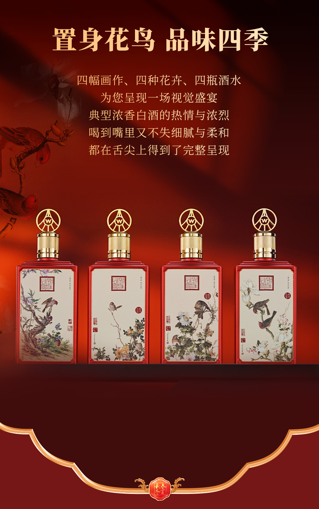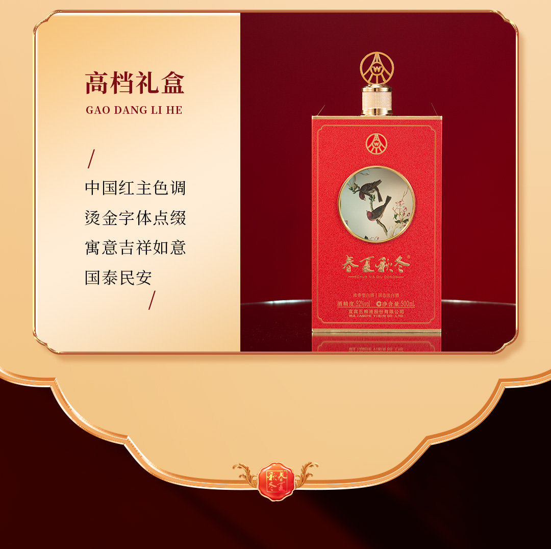 严选 | 五粮液春夏秋冬·郎世宁花鸟酒 500ml*4瓶装 整箱装 五粮液股份出品 52度