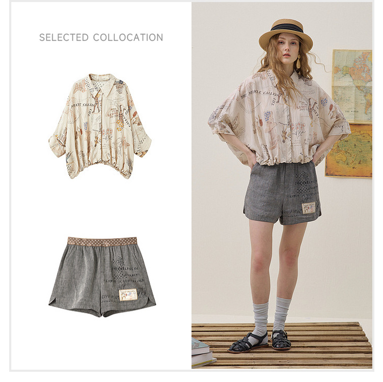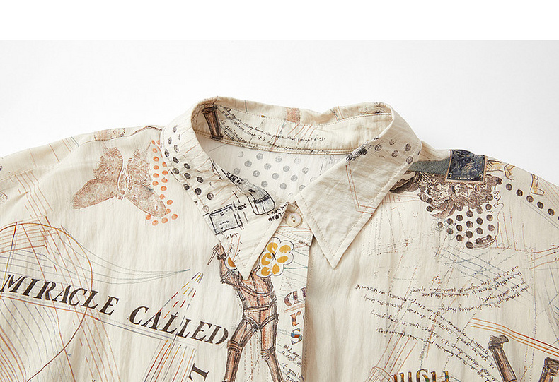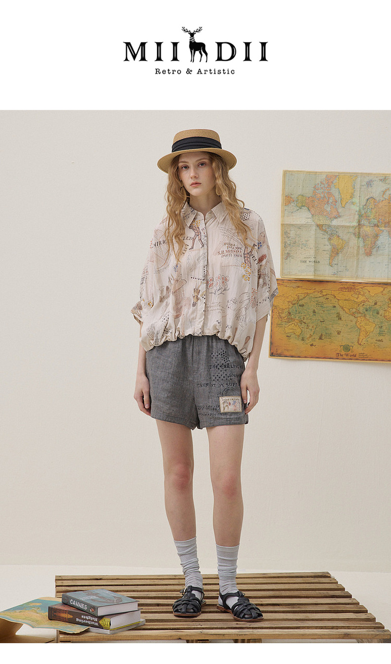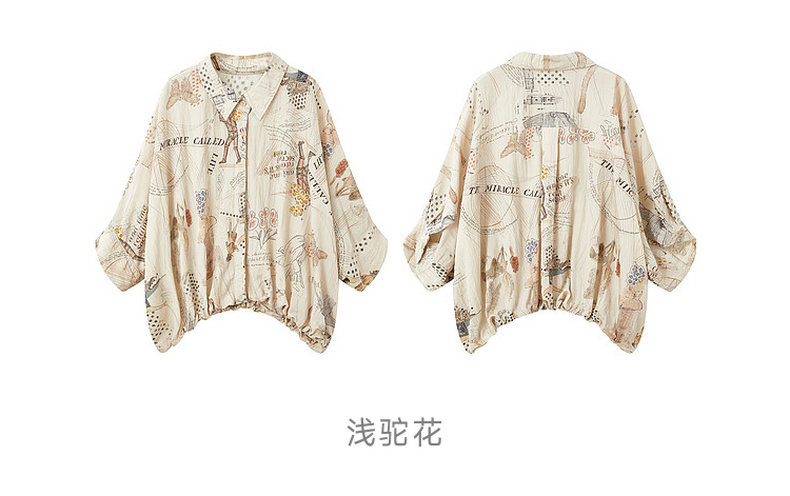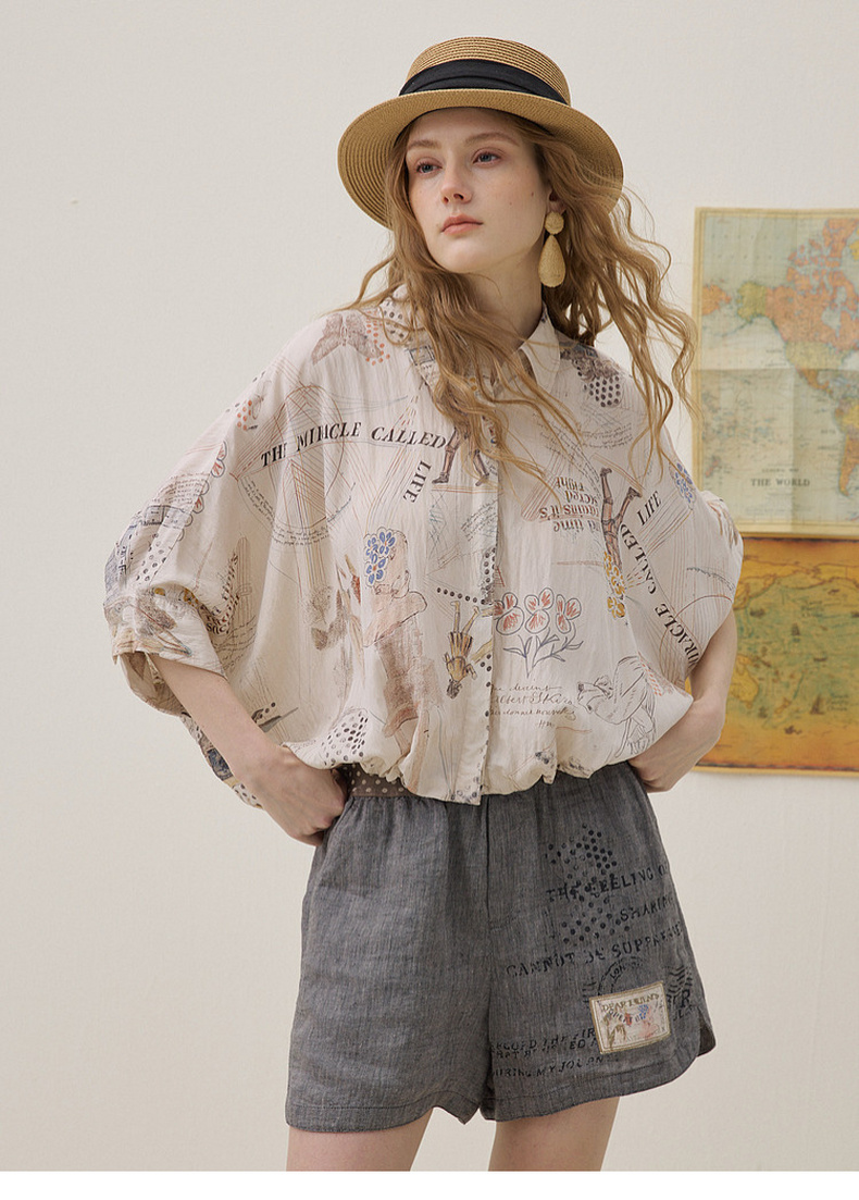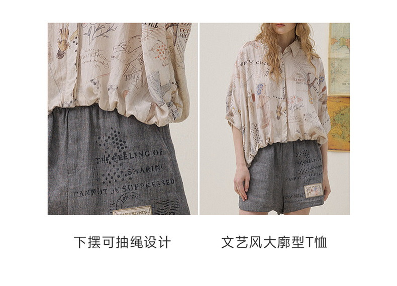 谜底印花衬衣分袖2026夏季新品宽松随性下摆抽绳衬衫女262MC0619