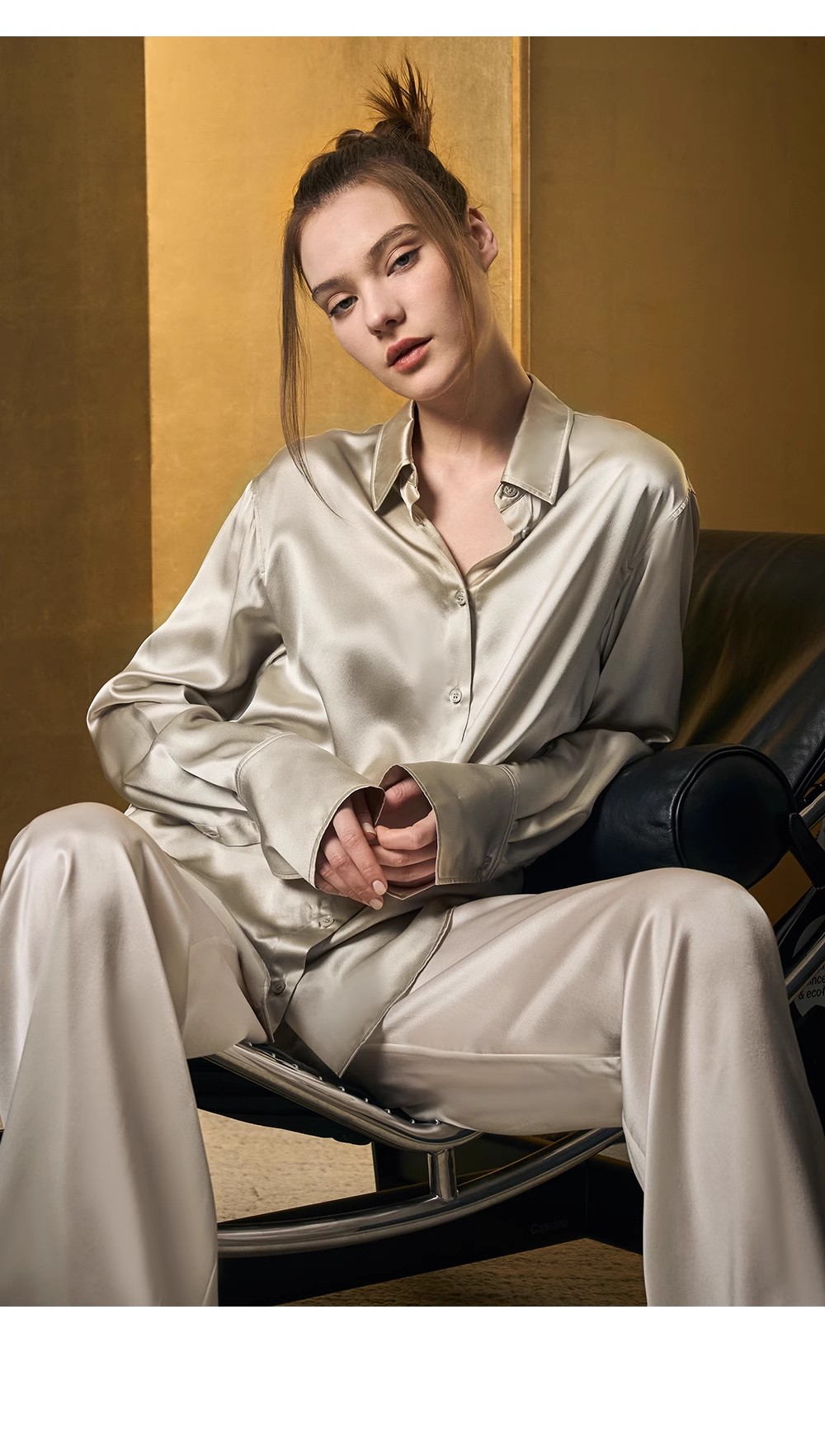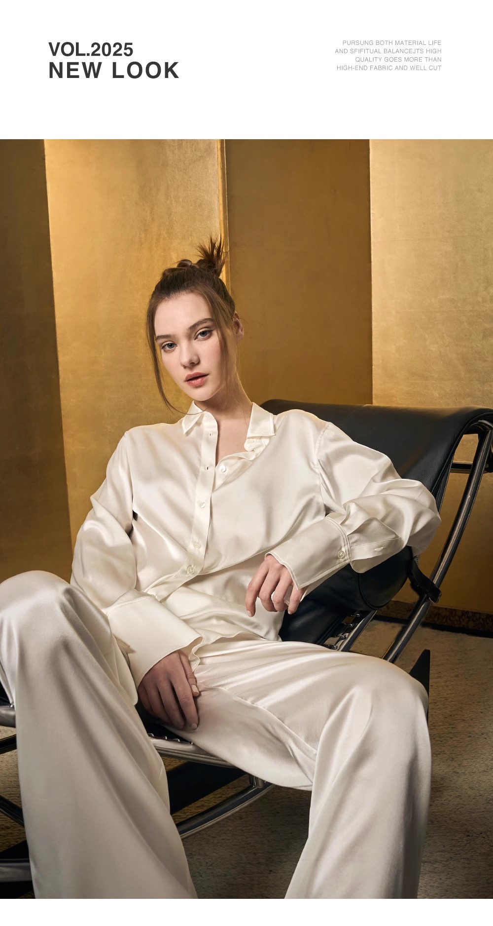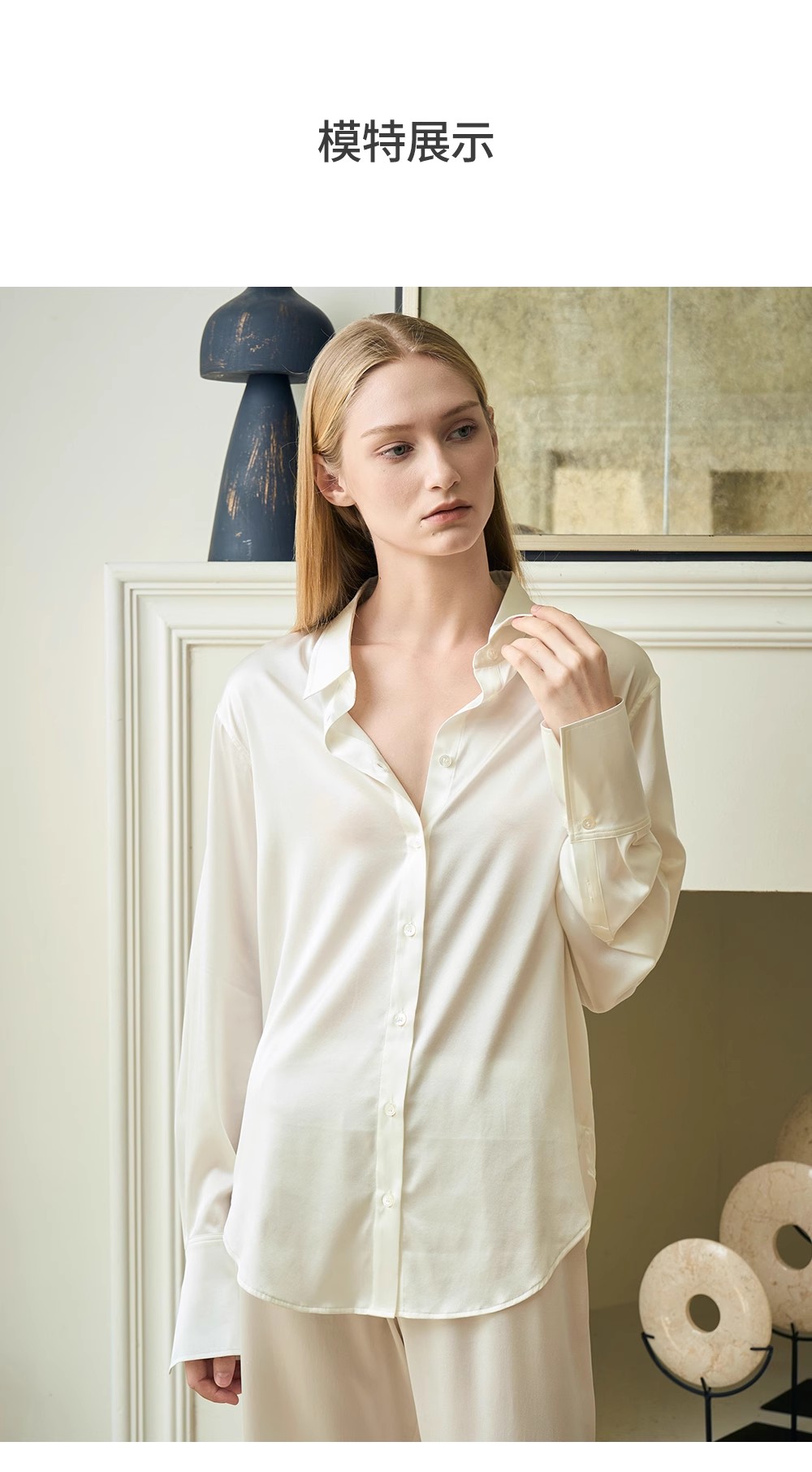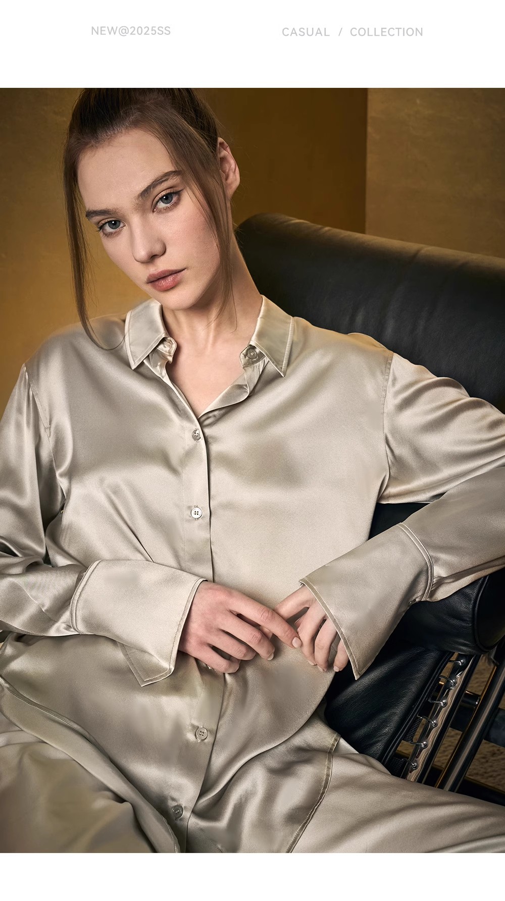 Solo seta桑蚕丝家居服女丝绸纯色睡衣缎面通勤宽松衬衫2025秋冬