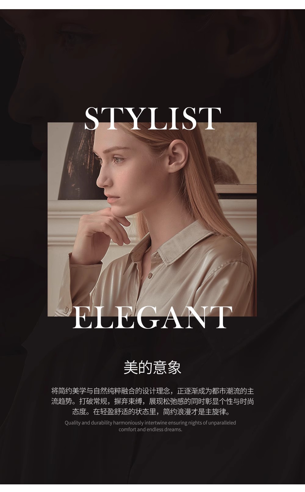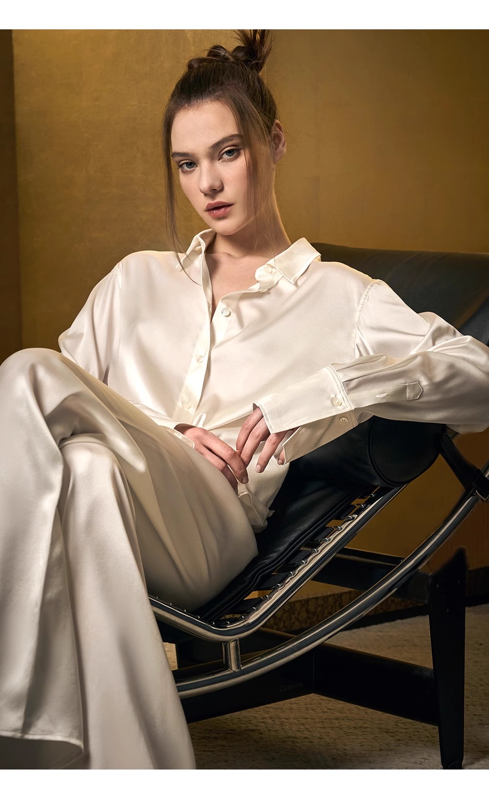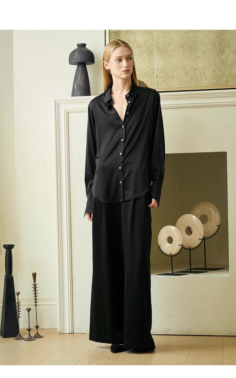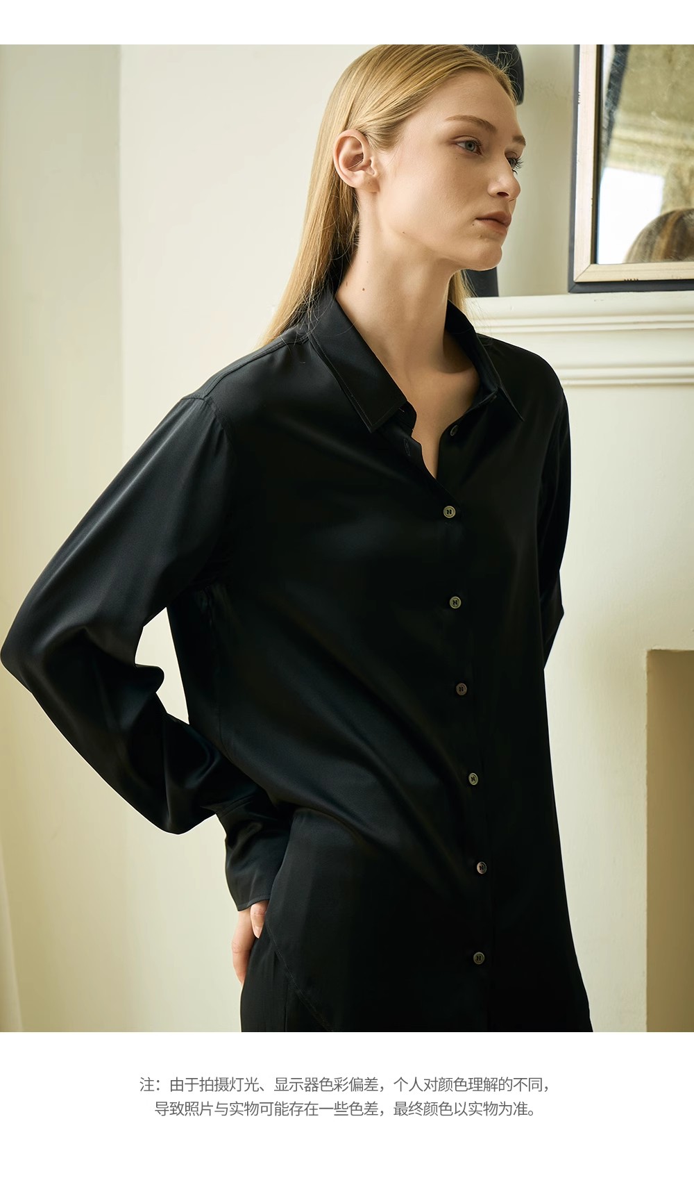 Solo seta桑蚕丝家居服女丝绸纯色睡衣缎面通勤宽松衬衫2025秋冬