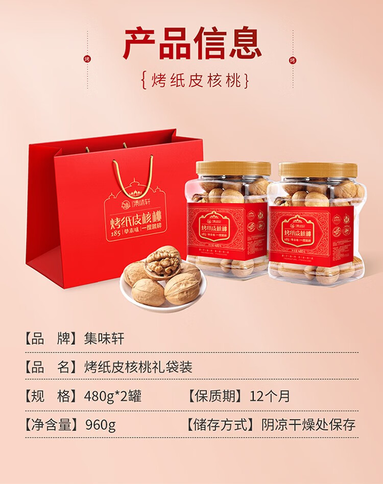 集味轩 核桃 烤纸皮核桃罐装960g