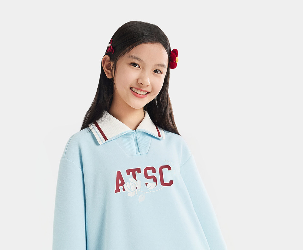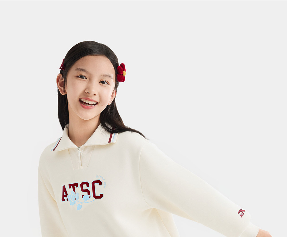安踏儿童女大童针织套头衫2026年新款舒适亲肤中大童翻领运动卫衣362621706