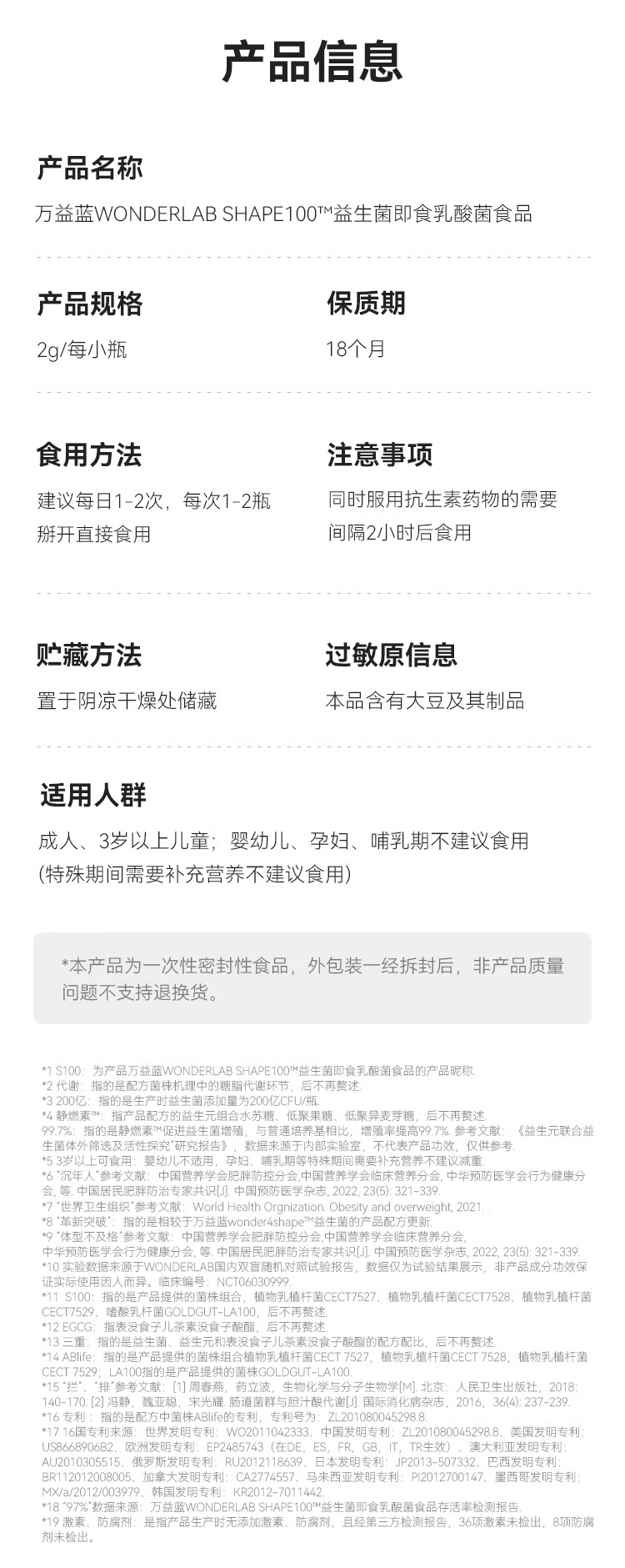 优选丨万益蓝WonderLab S100益生菌 2g*10瓶