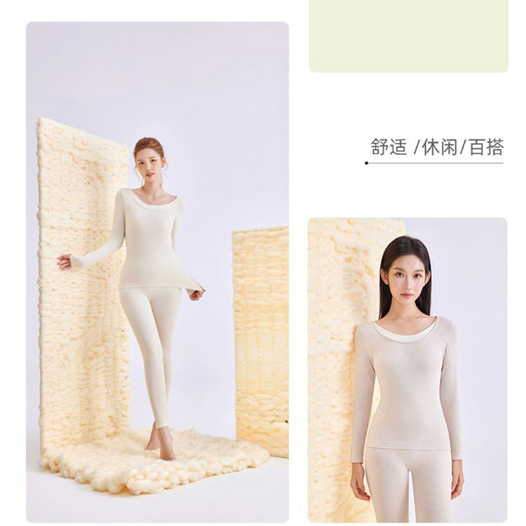 假两件圆领撞色拼接打底轻塑形保暖套装(外穿型)