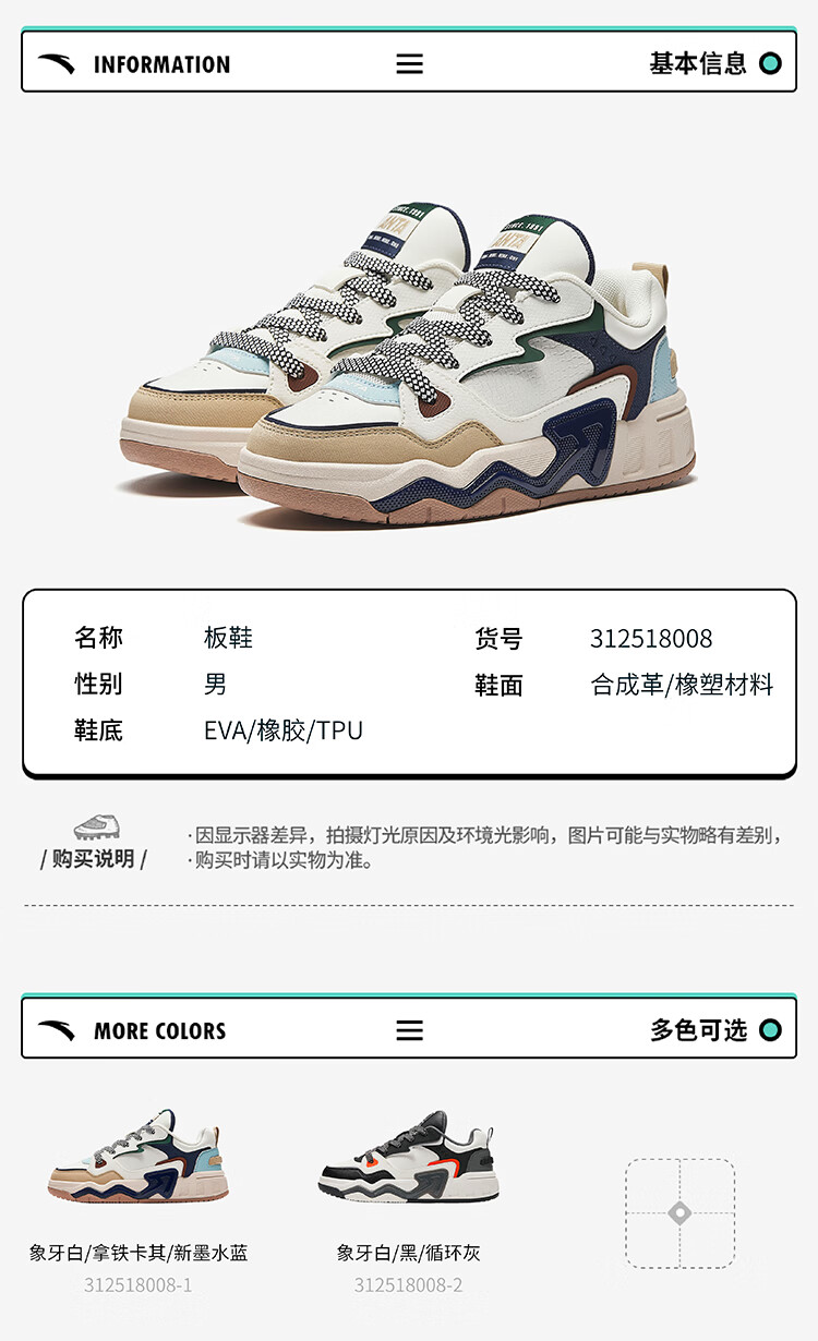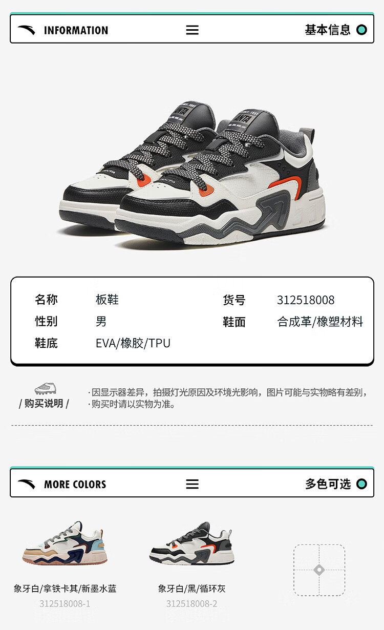 安踏儿童运动鞋男大童绑带低帮脉动板鞋312518008