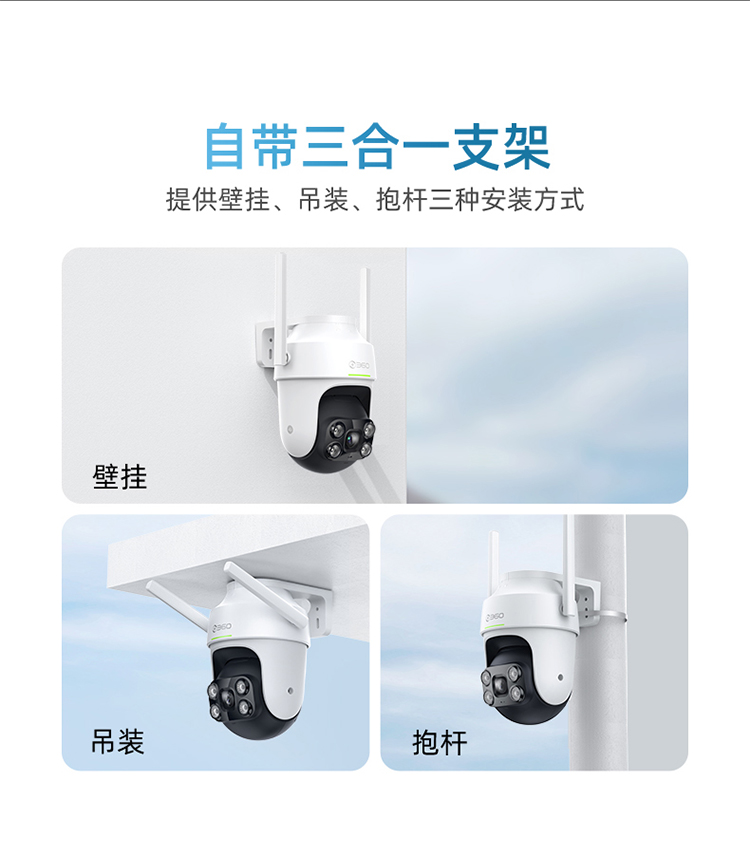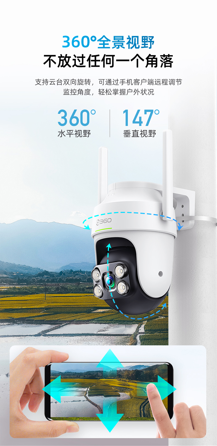 【专属】360 摄像头智能监控摄像机 300W室外户外防水监控声光报警 2K高清智能全彩夜视wifi云台球机5C无线畅联版AW4C