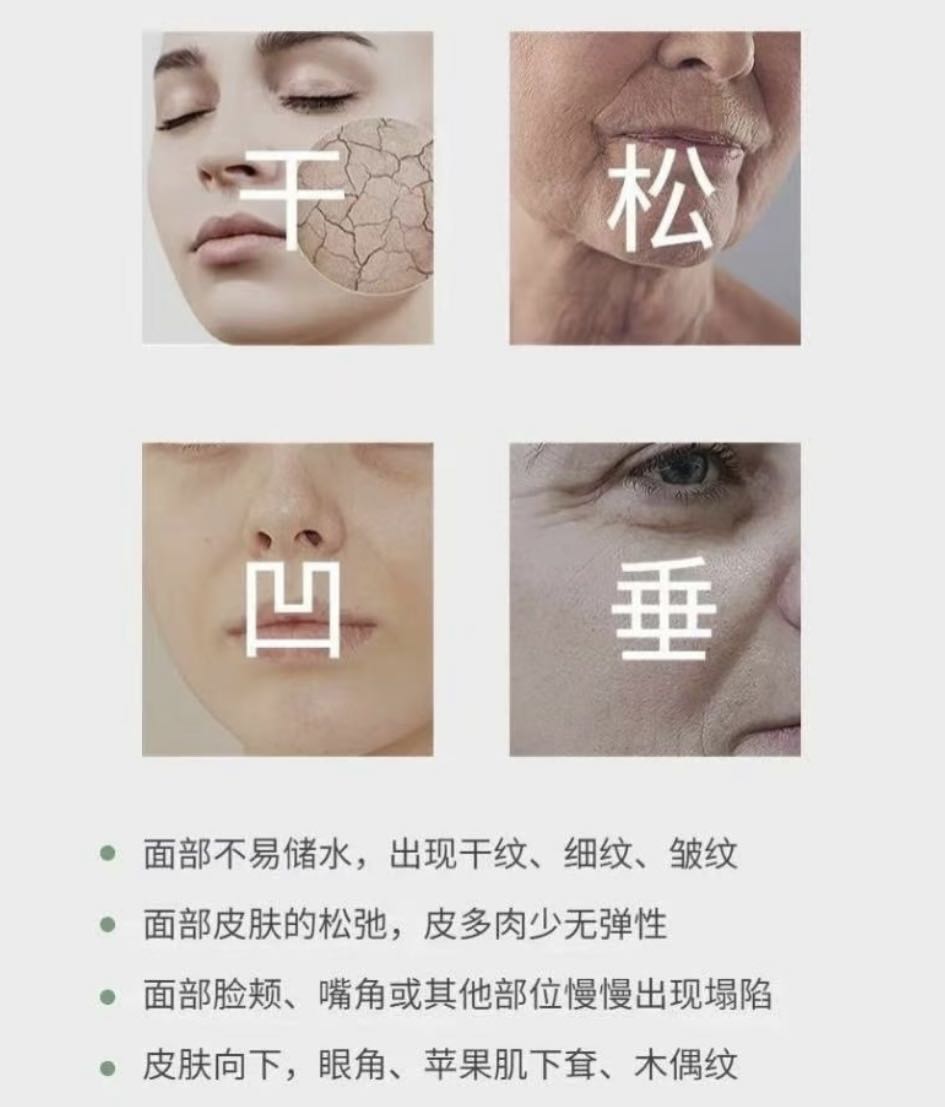 肌肤开始松垮有皱纹、胶原蛋白流失