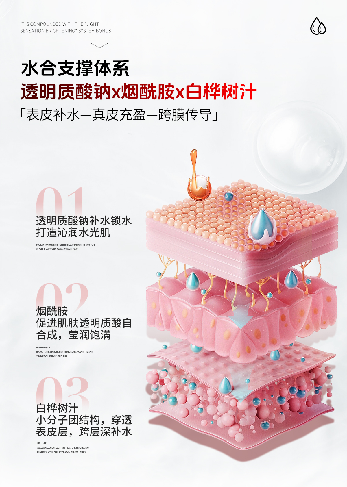 锁水磁石+透明质酸钠,实现快速补水与72小时长效锁水,适应干燥环境。