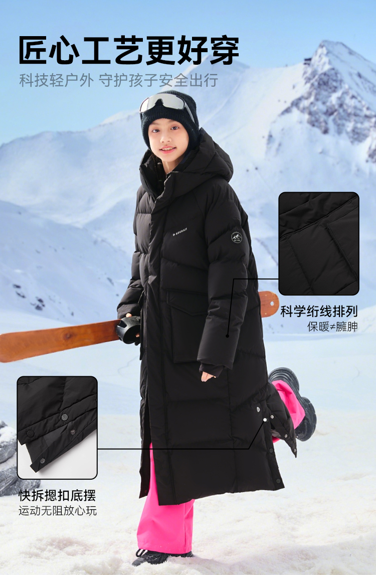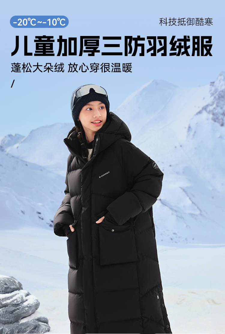 水孩儿童装长款羽绒服女童2025冬季新品男童三防抗静电加厚外套