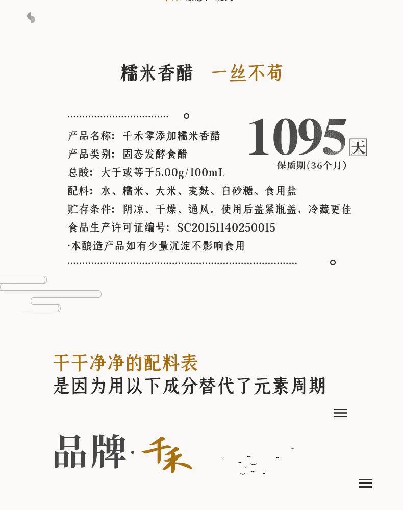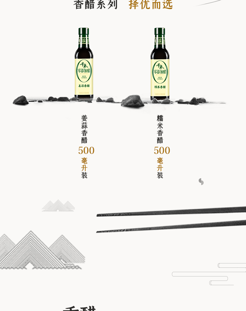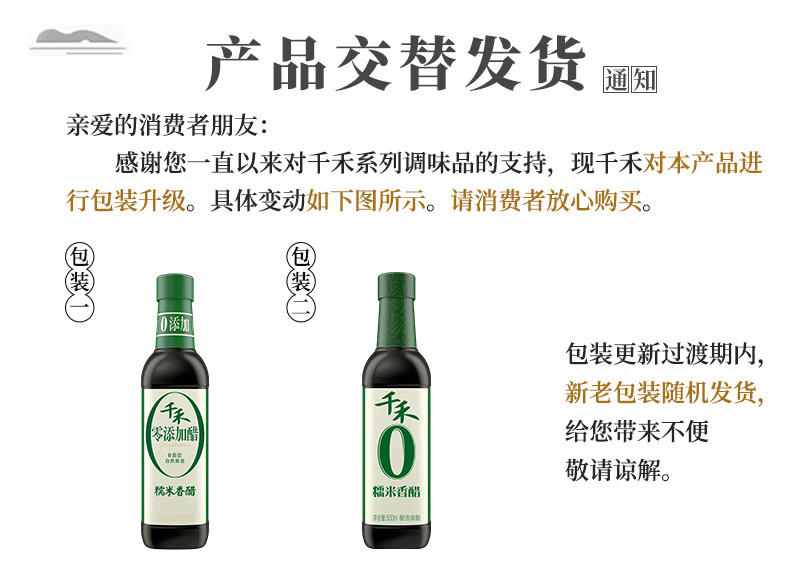 千禾 香醋+白醋 零添加糯米香醋500ml+白醋500ml