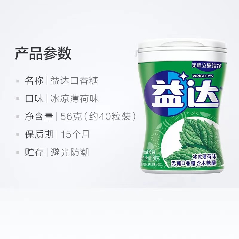 益达薄荷味口香糖56g