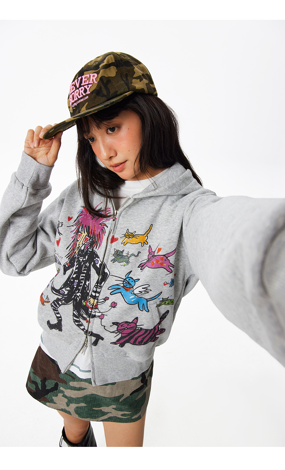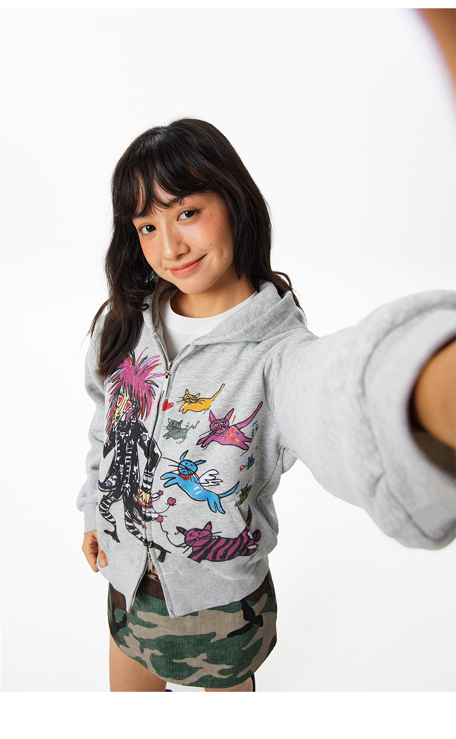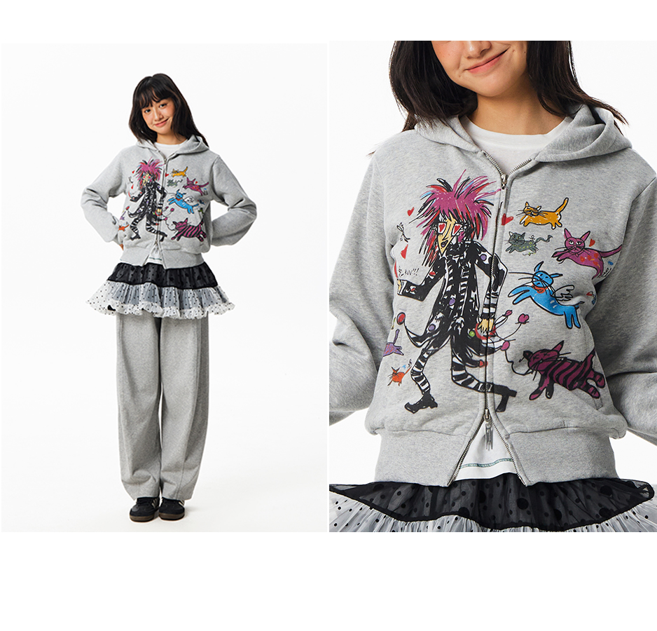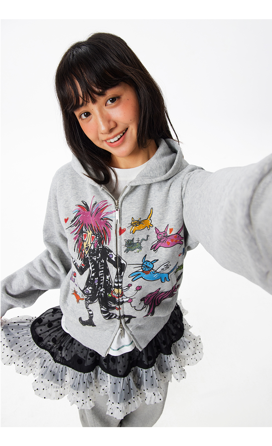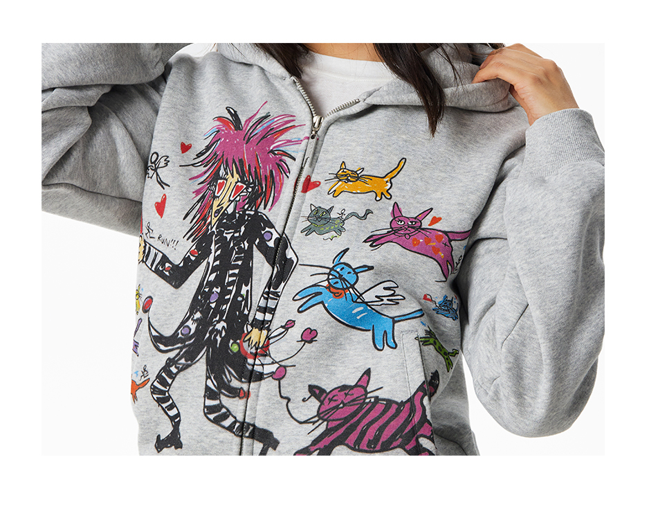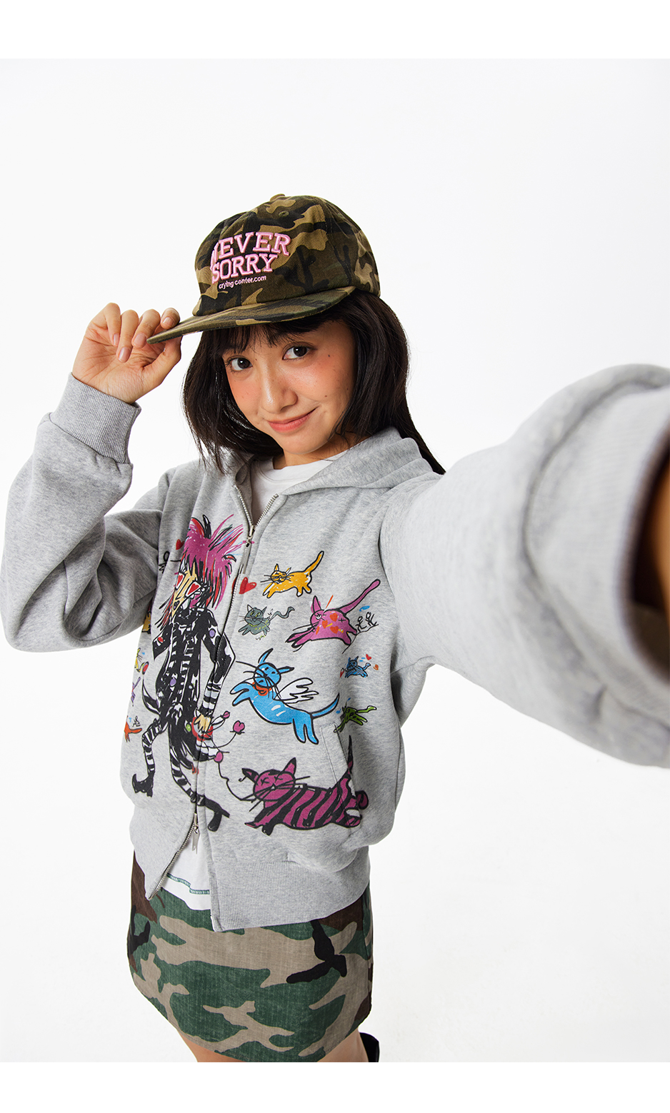 CryingCenter 非主流小猫接力赛正肩加绒卫衣外套男女款哭喊中心