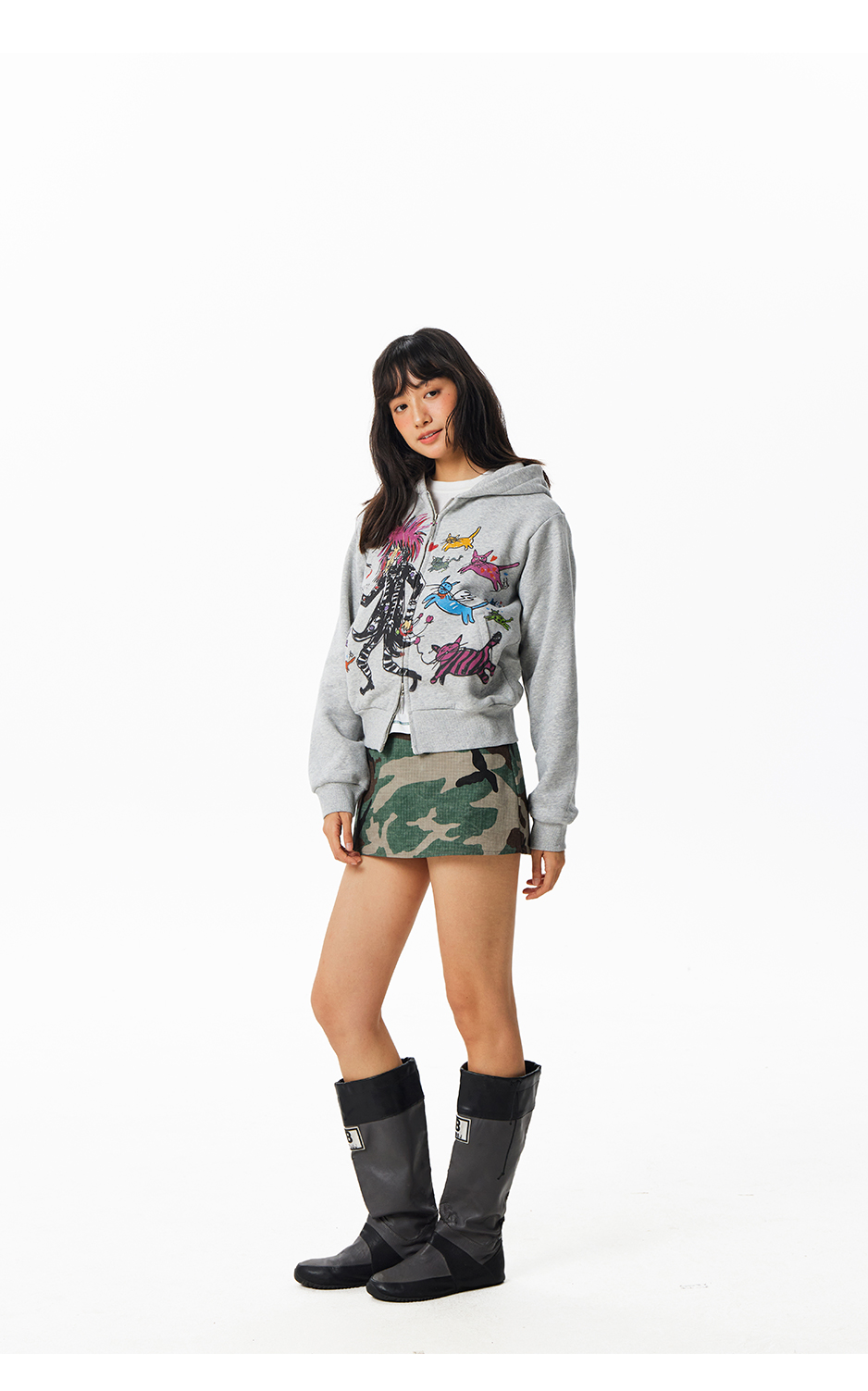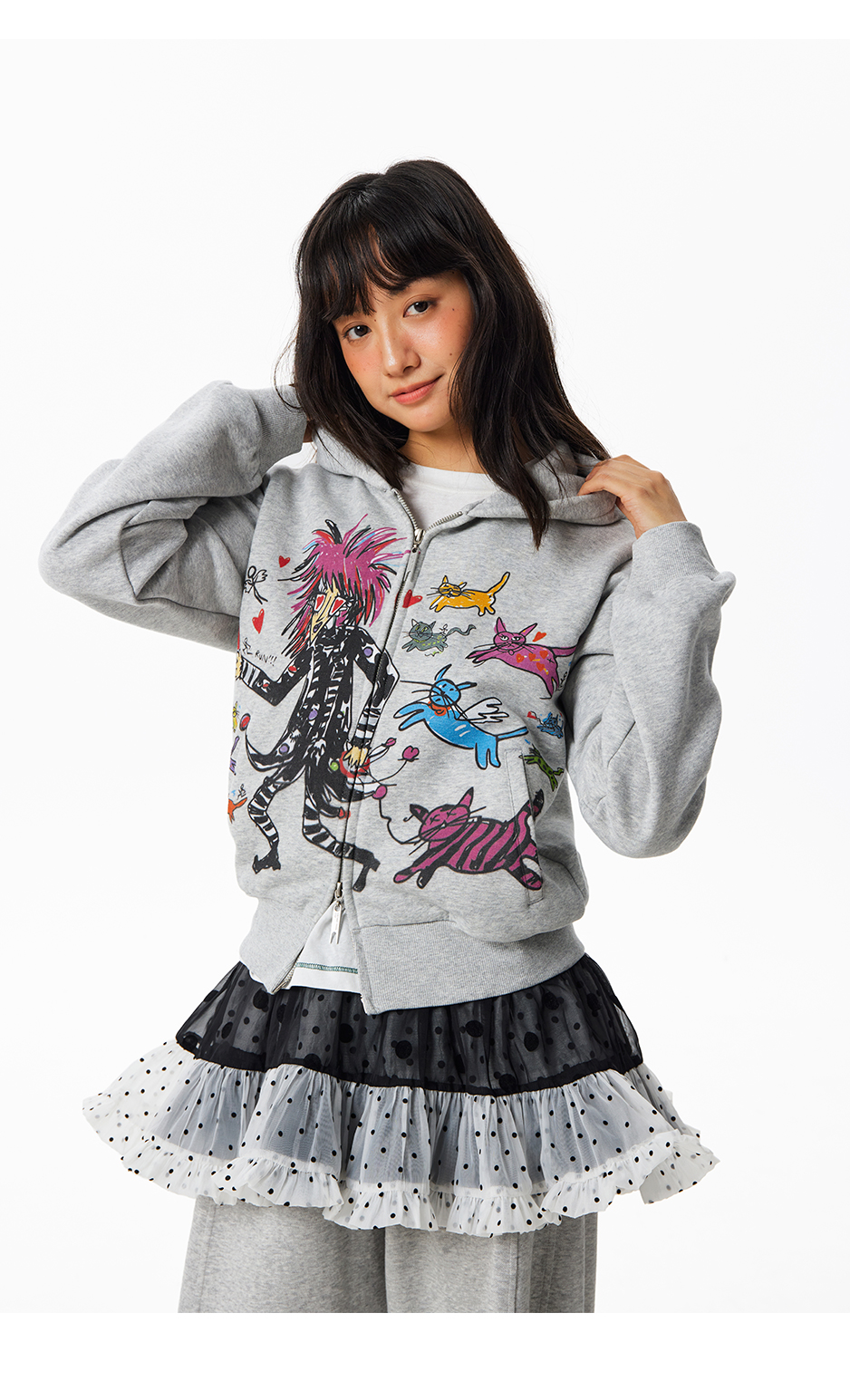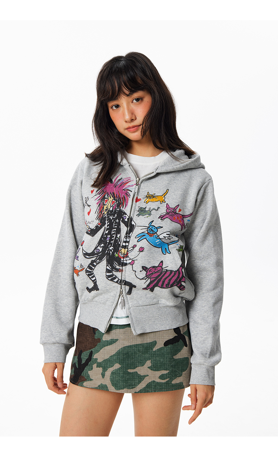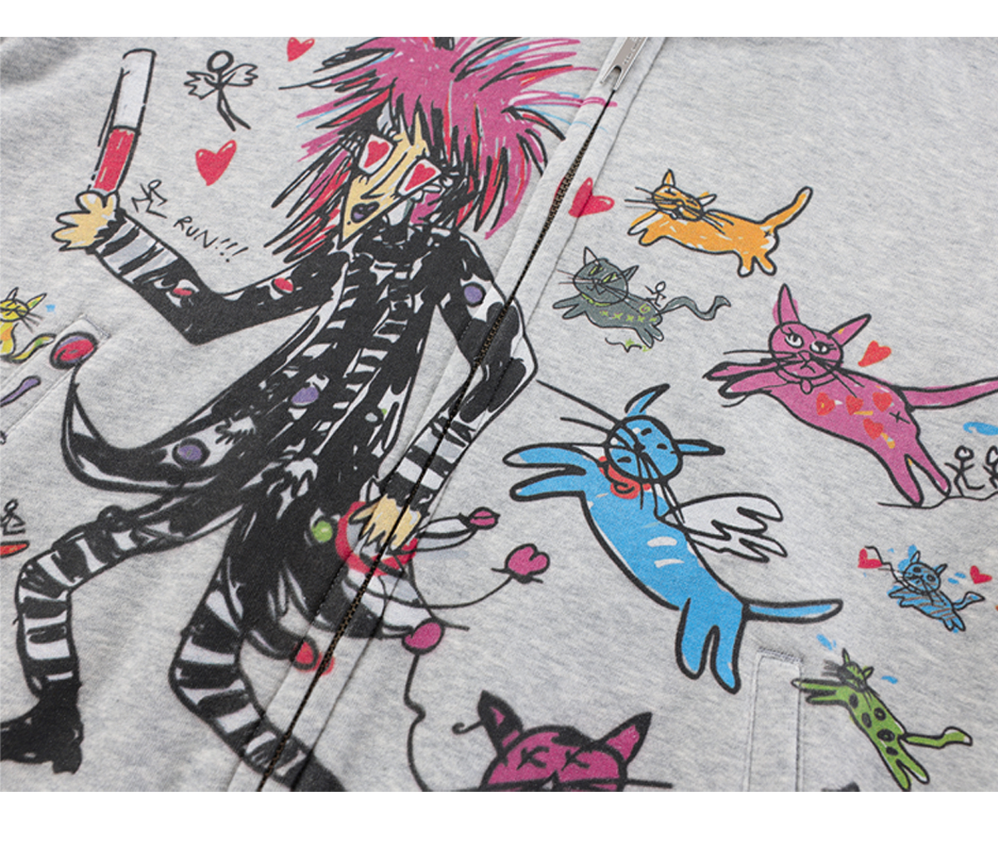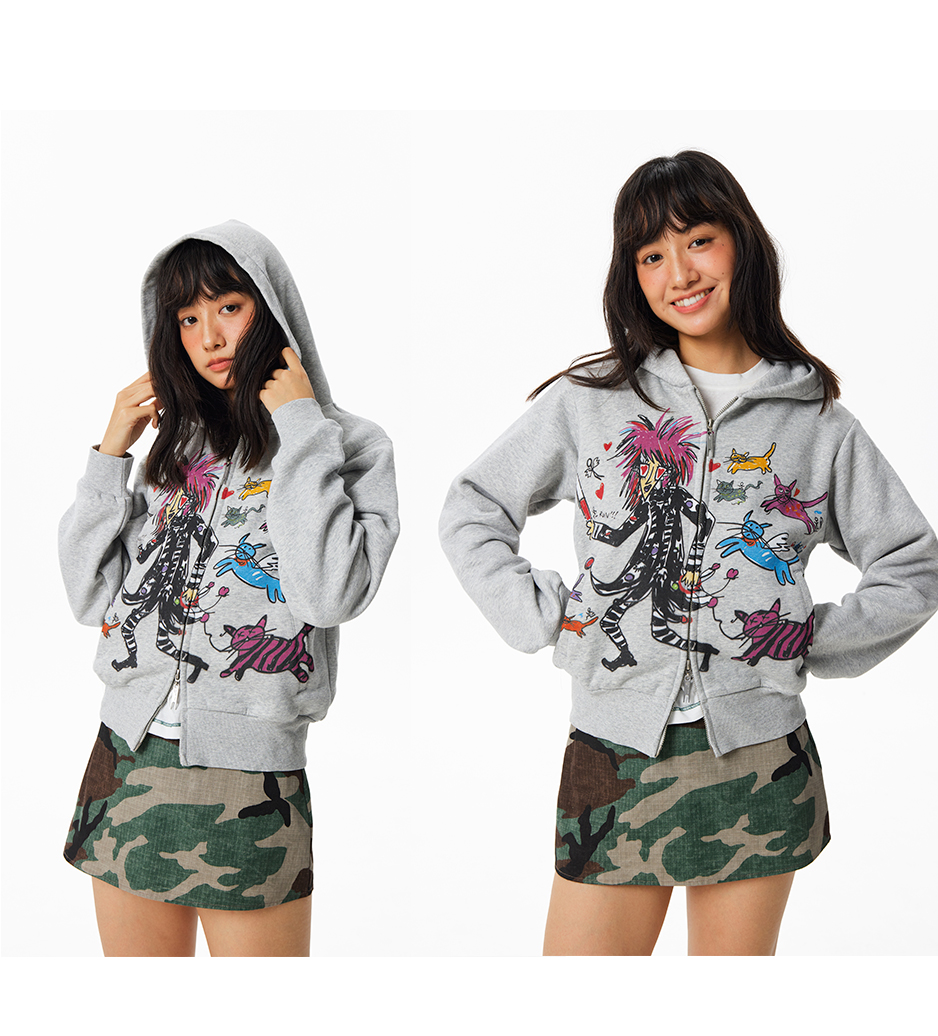 CryingCenter 非主流小猫接力赛正肩加绒卫衣外套男女款哭喊中心