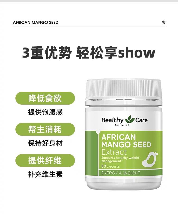 【保税仓】【纤体瘦身】澳洲 Healthy Care 非洲芒果籽精华 60粒