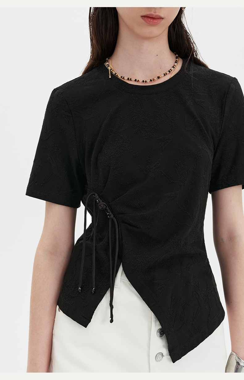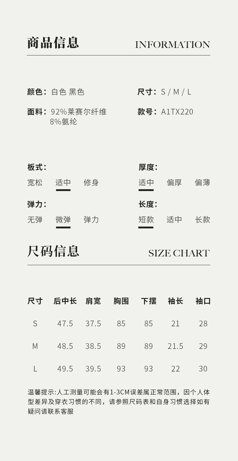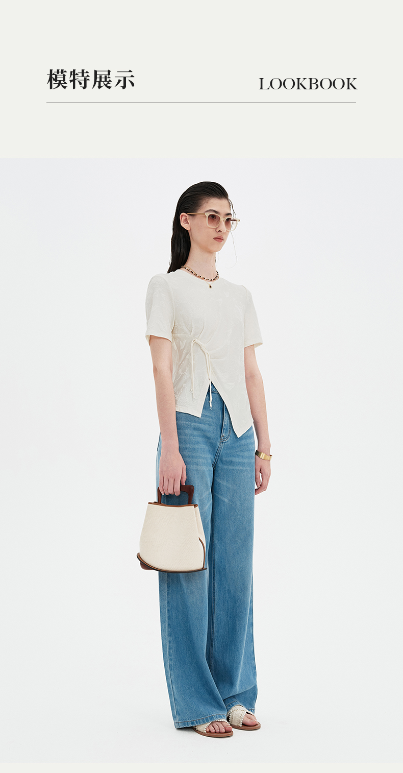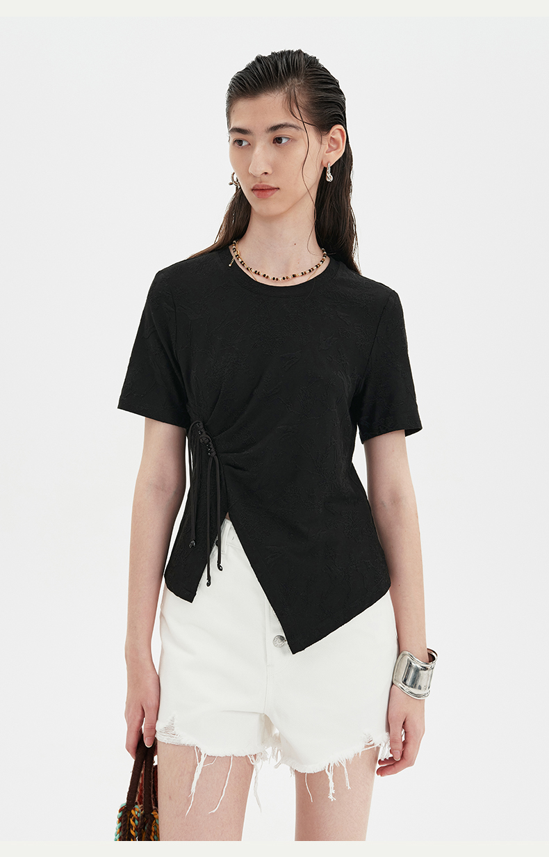 SELFWHO莱赛尔纤维短袖t恤女夏2024新款开叉盘扣设计感百搭短上衣