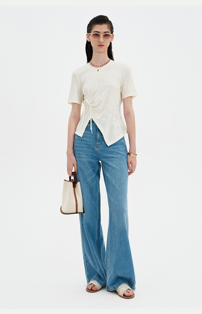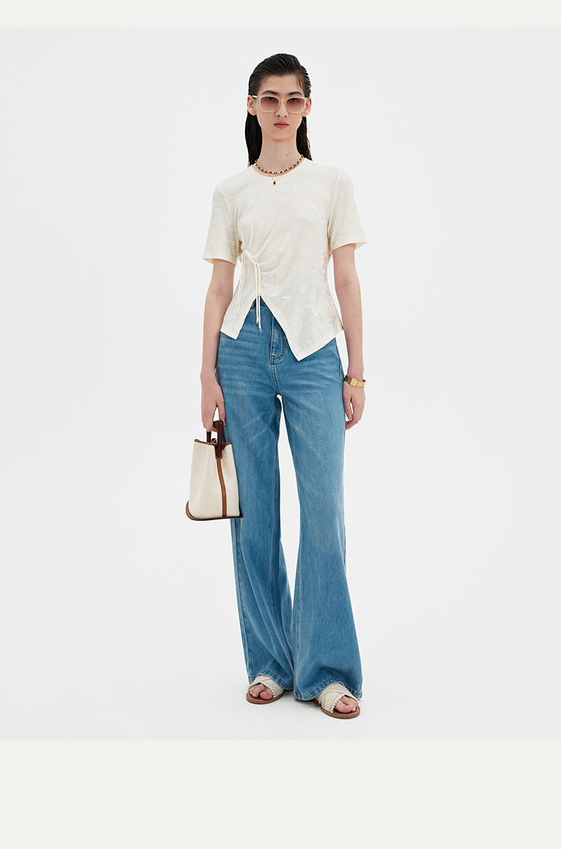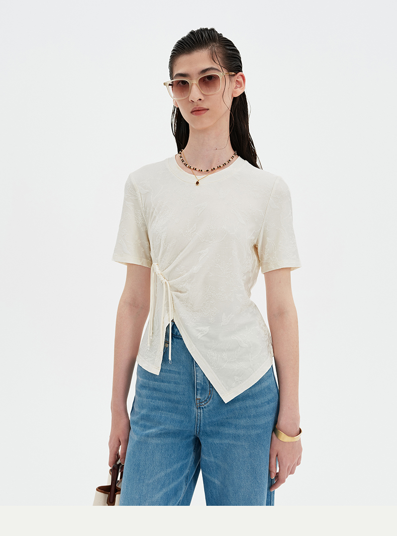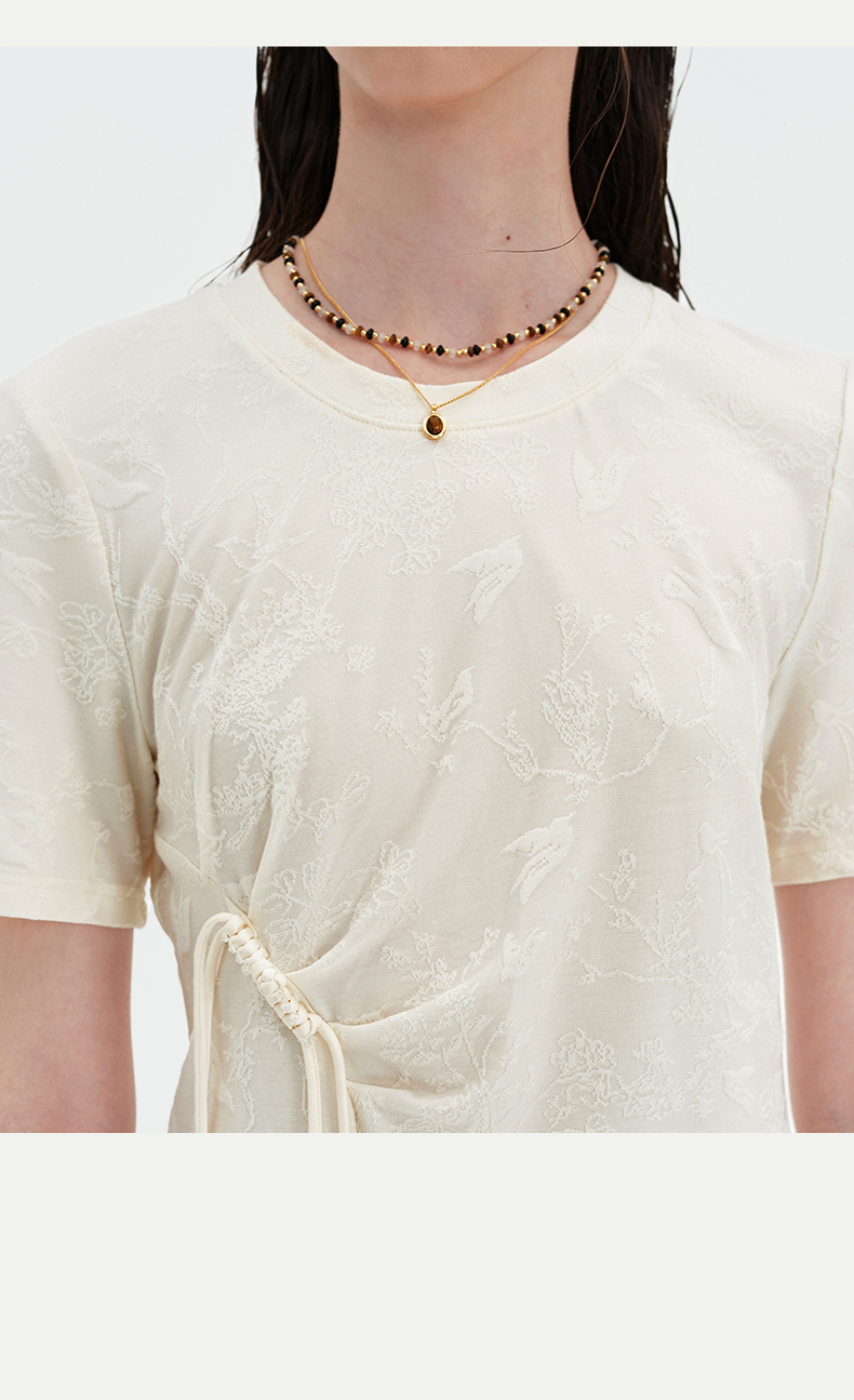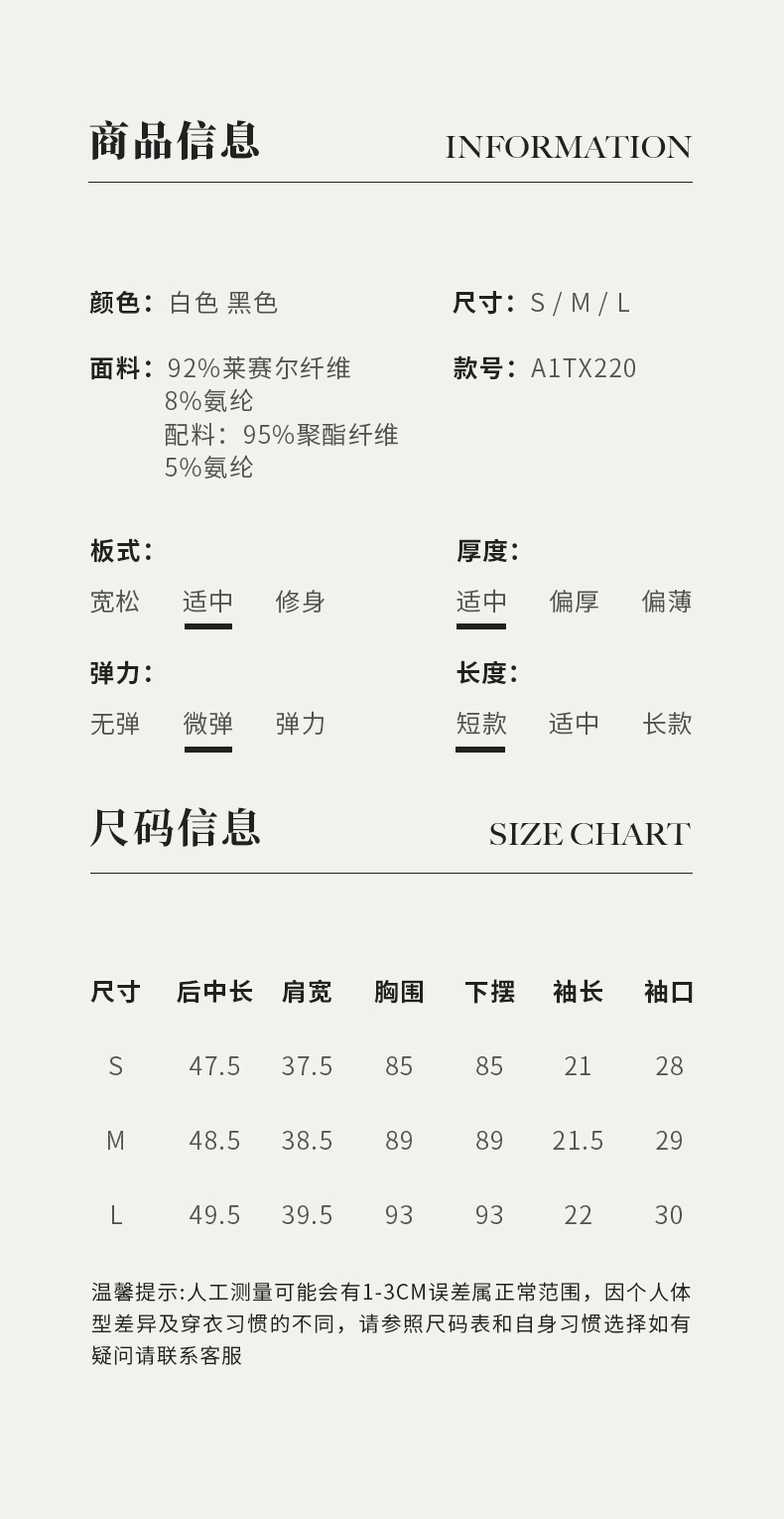 SELFWHO莱赛尔纤维短袖t恤女夏2024新款开叉盘扣设计感百搭短上衣