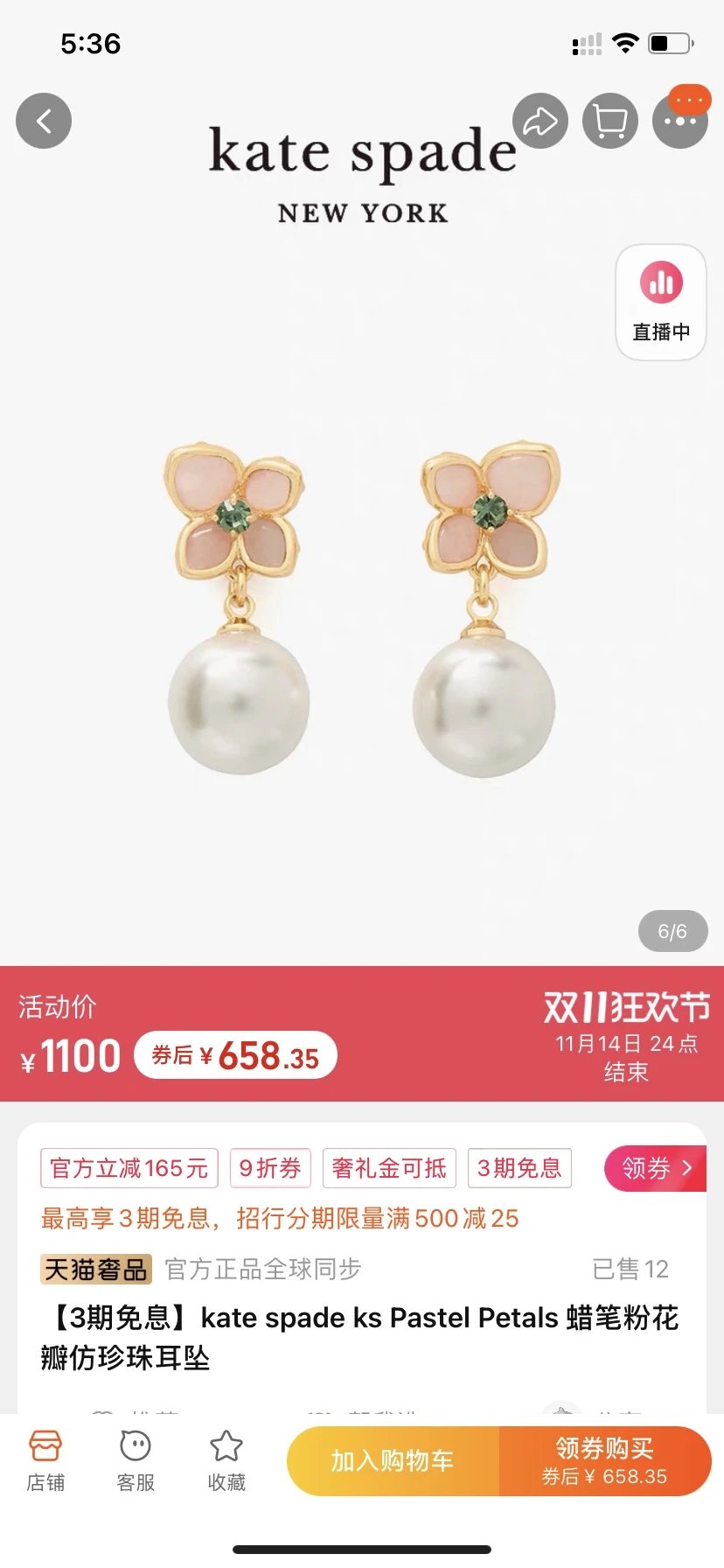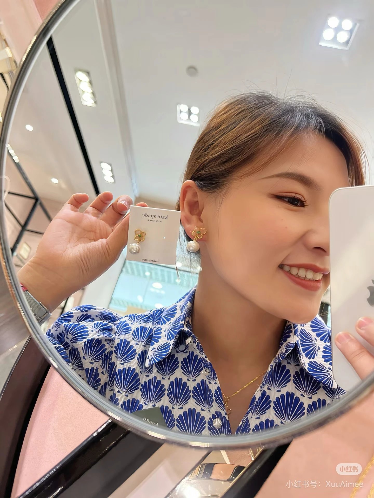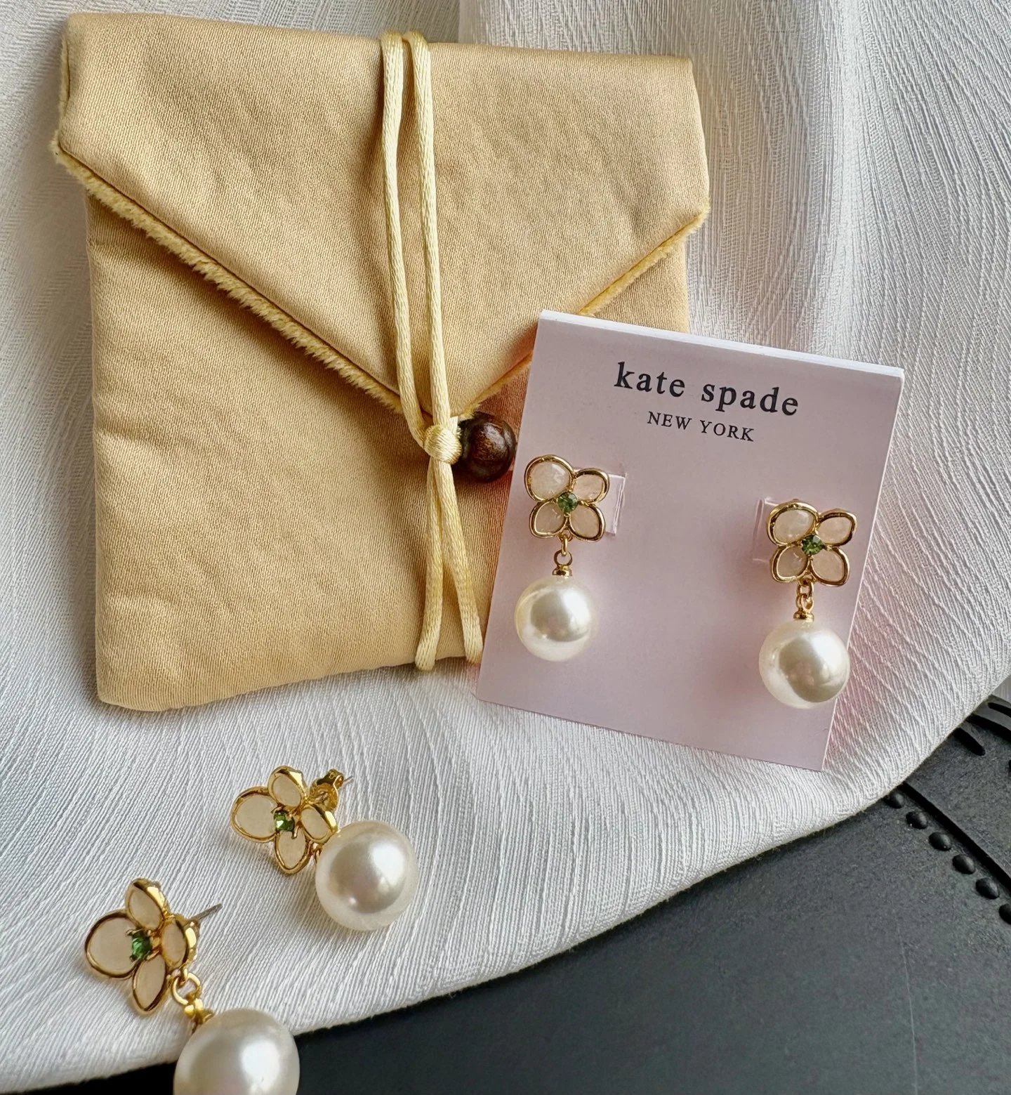 Kate Spade四叶草珍珠耳环,官网售价700+,