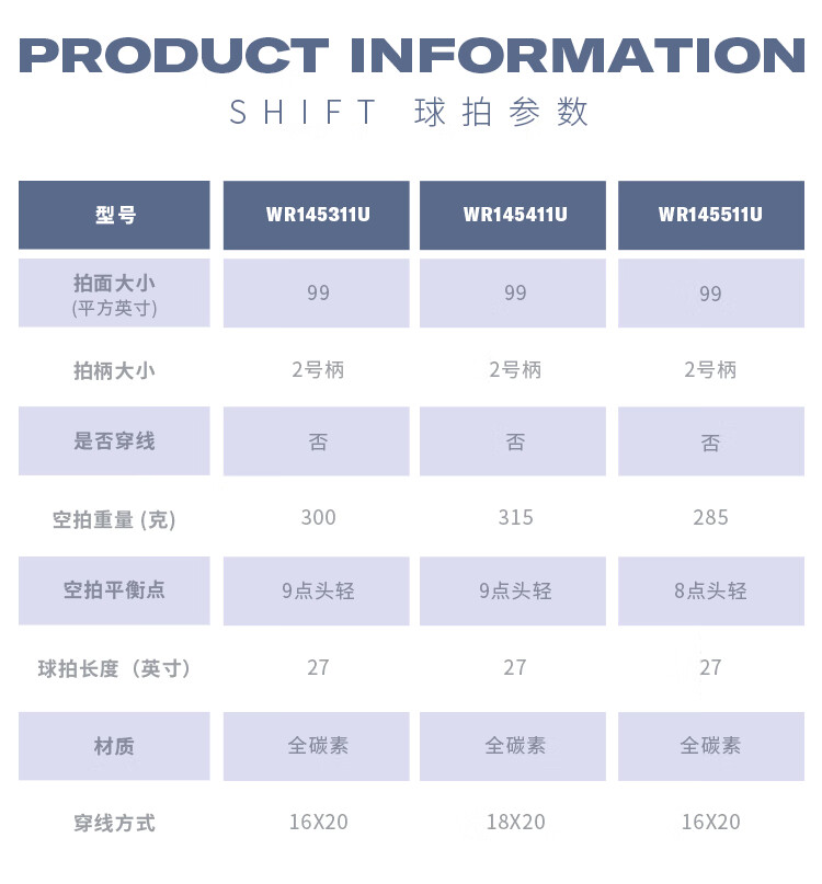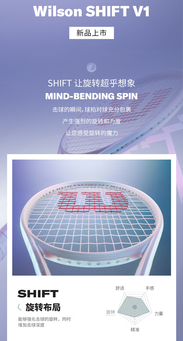 威尔胜(Wilson)SHIFT系列全碳素一体成人专业网球拍 WR145511U2