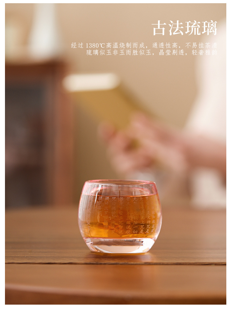 【心经玻璃小茶杯】敦煌小众琉璃心经茶杯主人杯高档茶杯喝泡茶盏杯单个人专用品茗杯功夫茶具