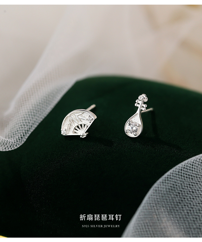 【品名】敦煌折扇琵琶纯银耳钉