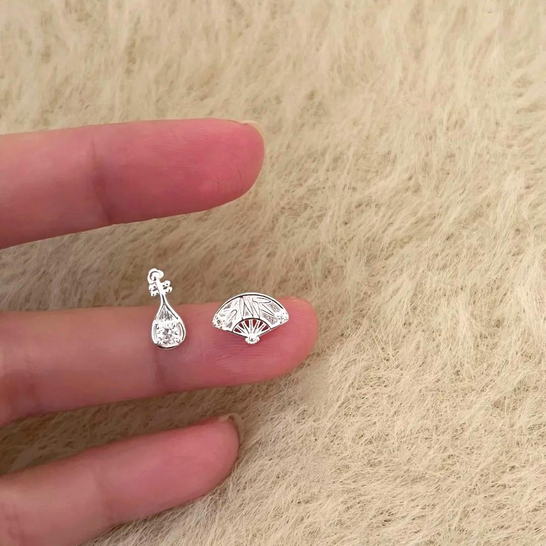 【敦煌折扇琵琶纯银耳钉】敦煌小众琵琶扇子新中式耳钉女时尚气质民族风耳饰耳骨钉国风