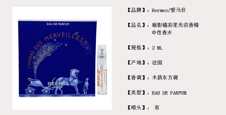 【保税仓】Hemmes爱马仕紫罗勒古龙水、暗影橘彩星光、大地泠洌之水、屋顶花园淡香2ml