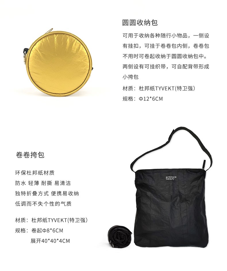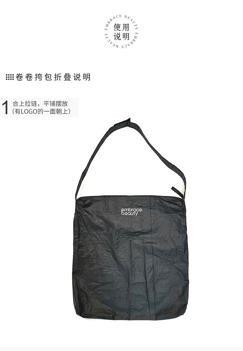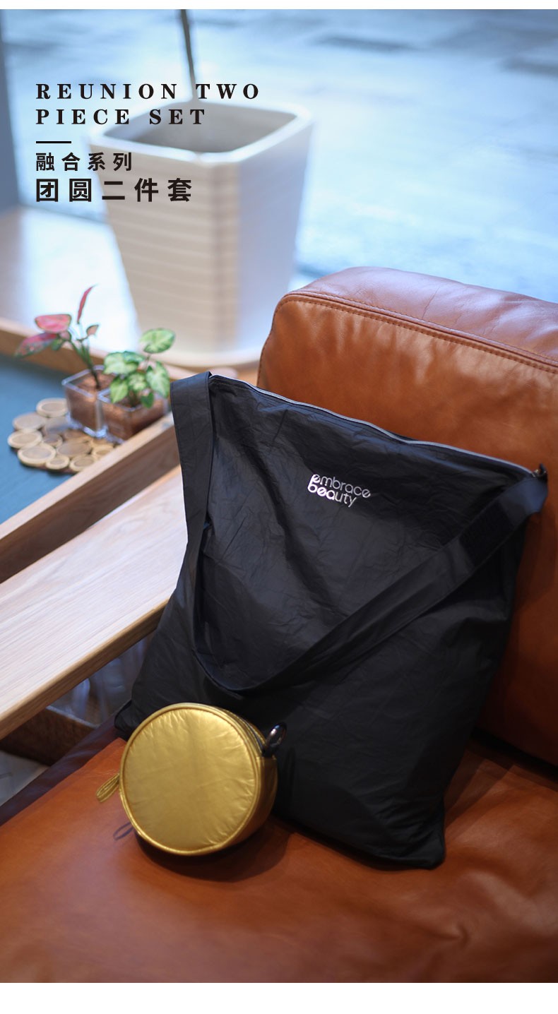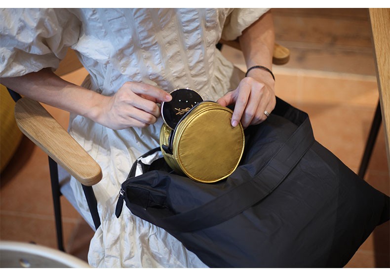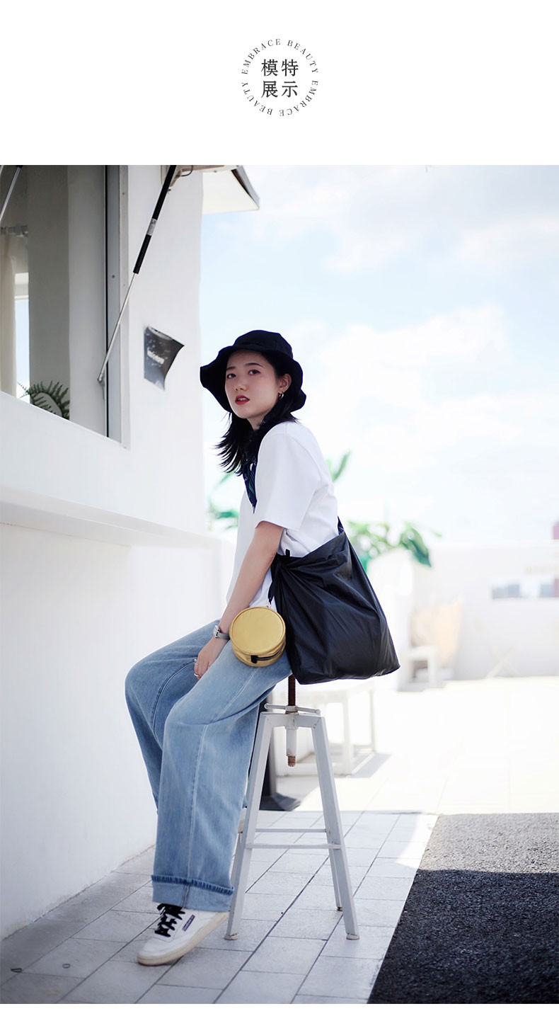 又见美物 团圆包 圆形收纳包加可折叠单肩斜挎包环保百搭ins单肩包 黑色 EB2201