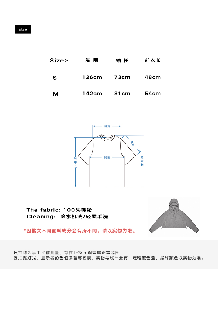 CryingCenterUPF50+轻量化短款休闲户外防晒外套套装哭喊中心