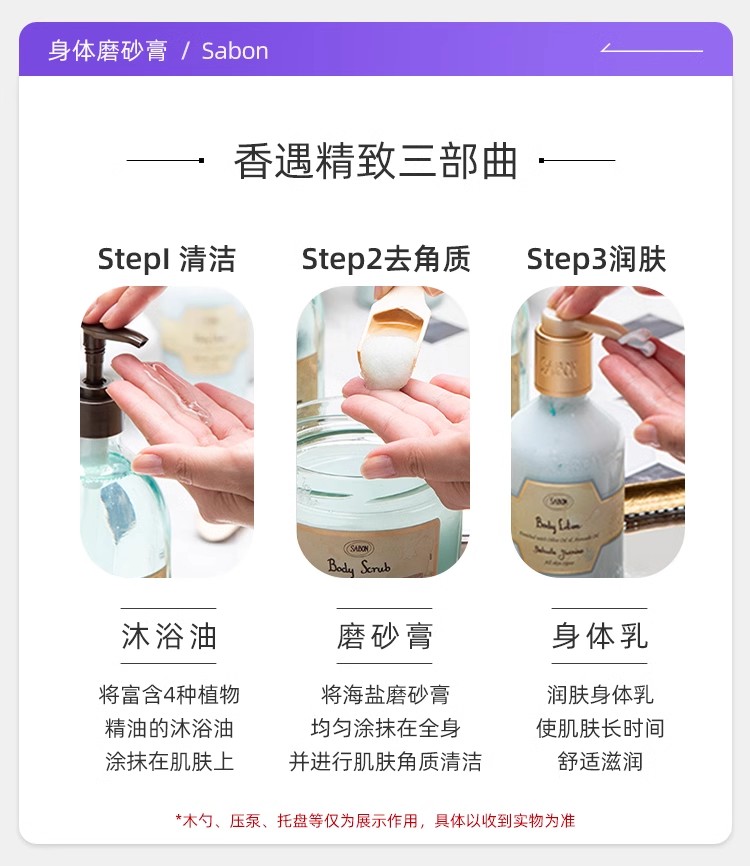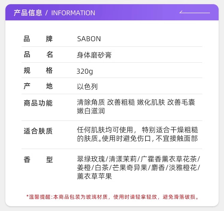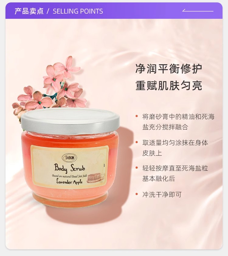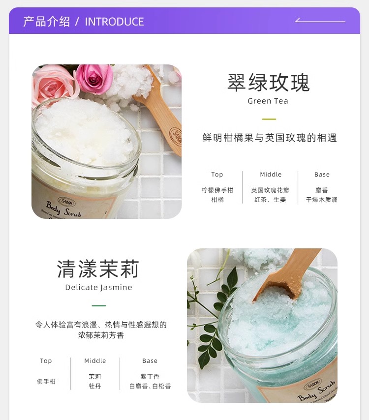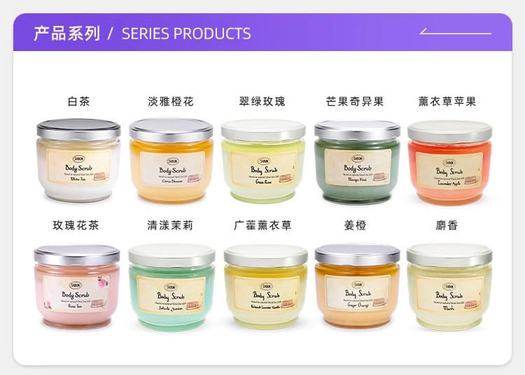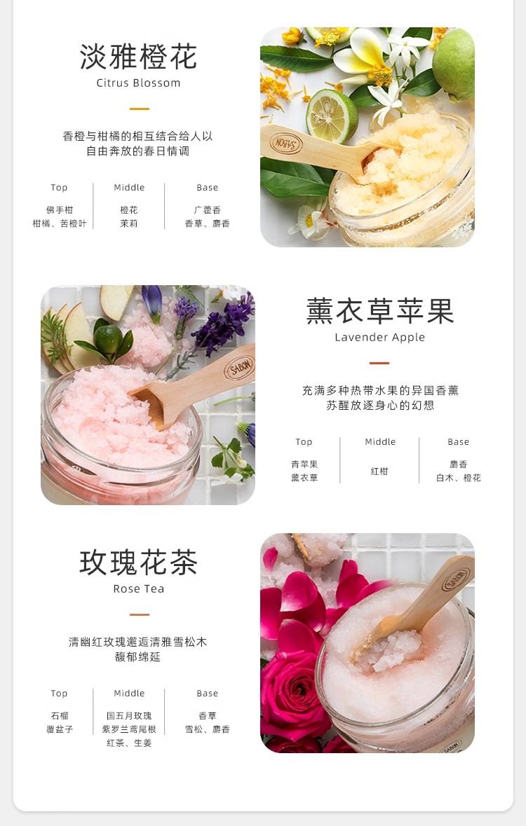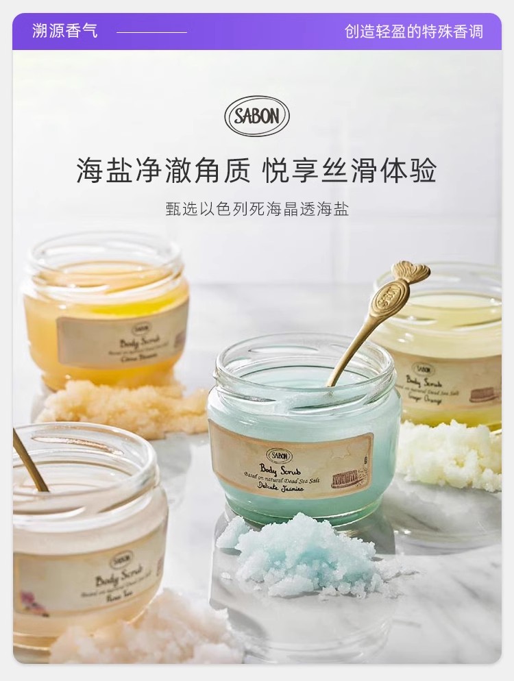 【保税仓】SABON绿玫瑰、茉莉花、白茶、薰衣草广藿香身体磨砂膏320g(无盒)