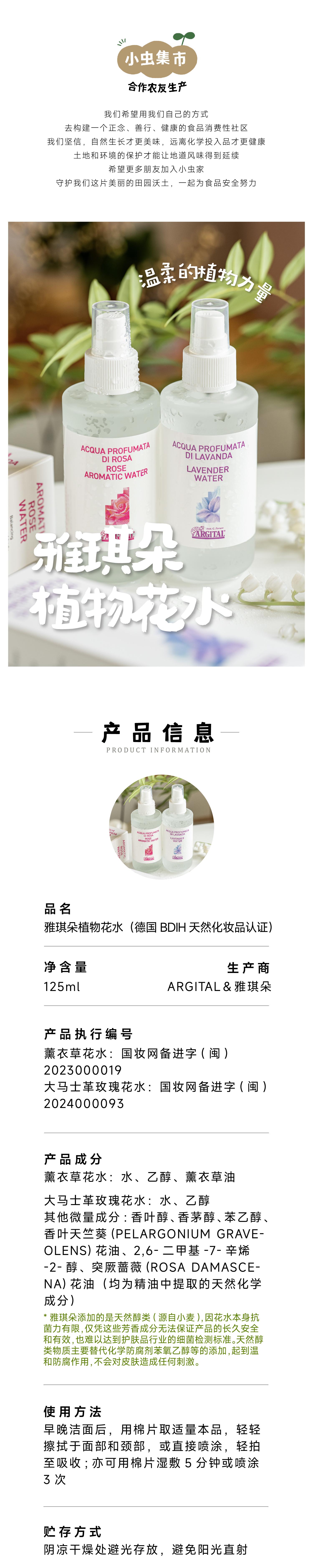 雅琪朵植物花水125ml (薰衣草/大马士革玫瑰)| 合作农友生产,意大利原装进口,生产商:ARGITAL*雅琪朵【公平贸易农人定价】