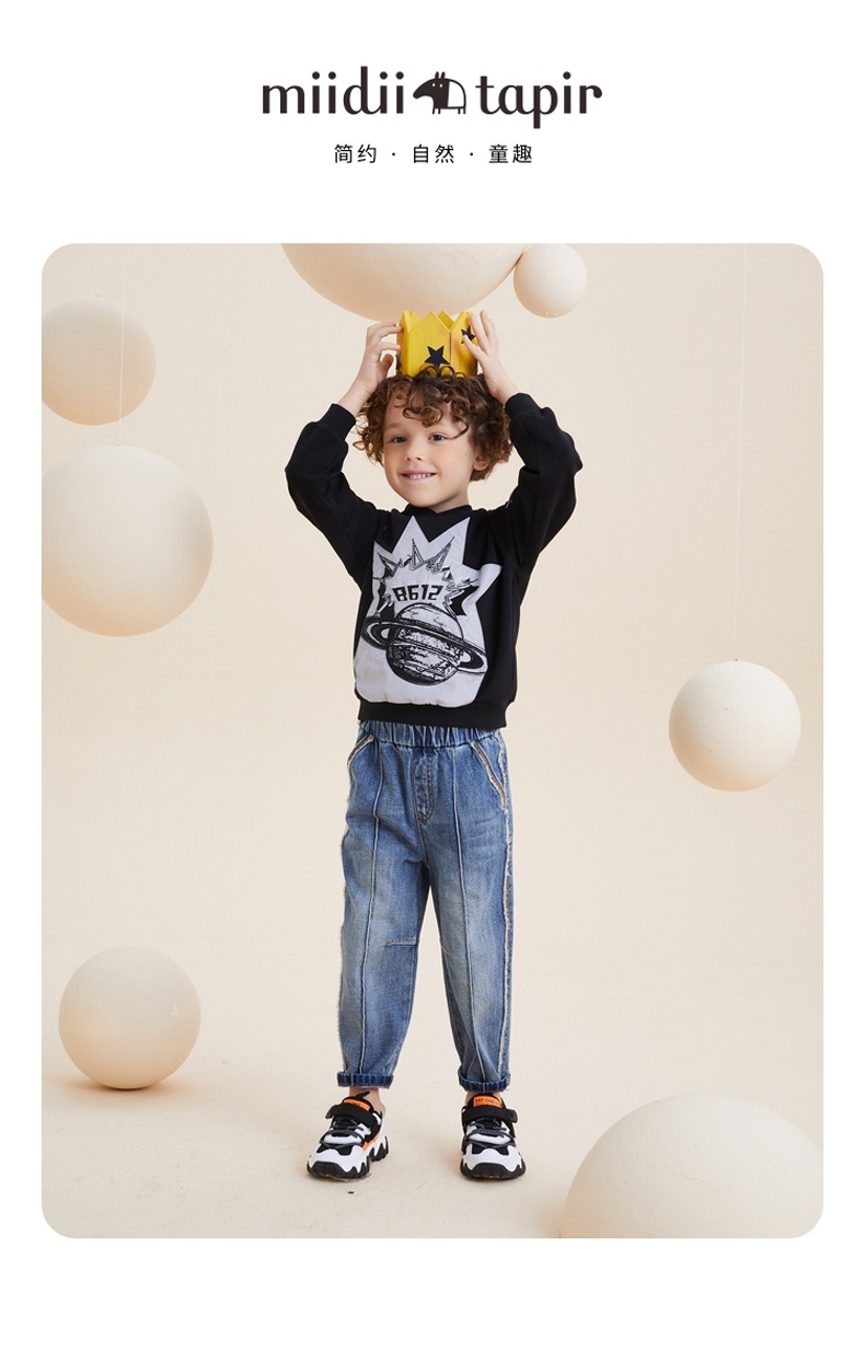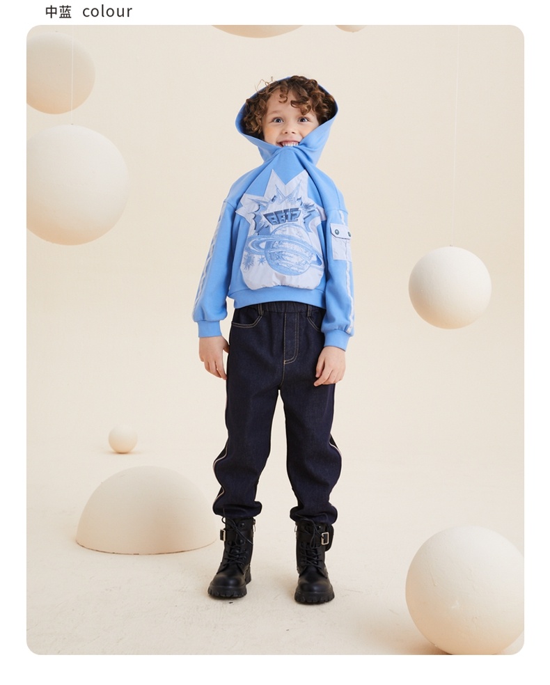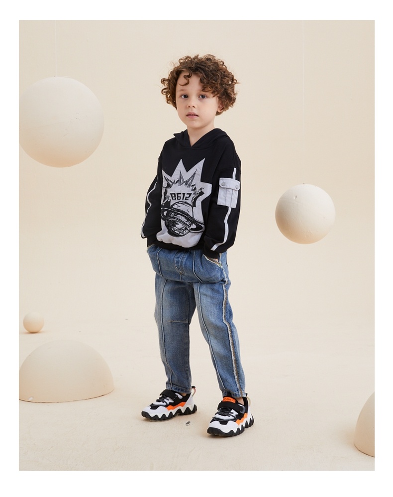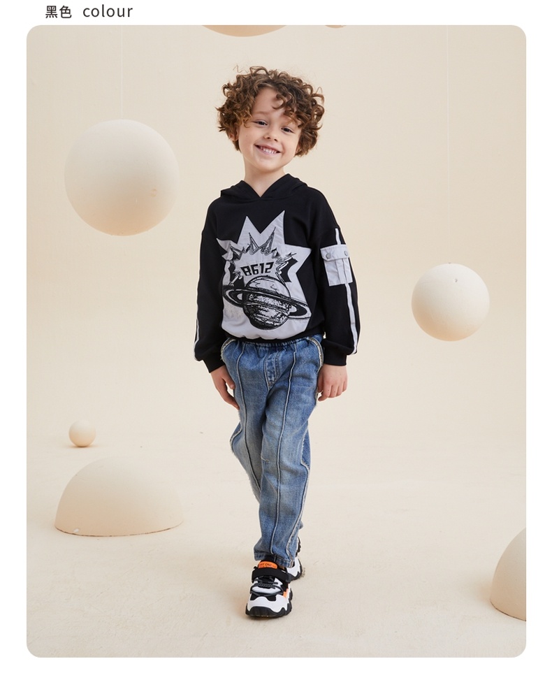 谜底童装21秋新款H型中款T恤时尚炫酷绣花连帽T恤213KT2201