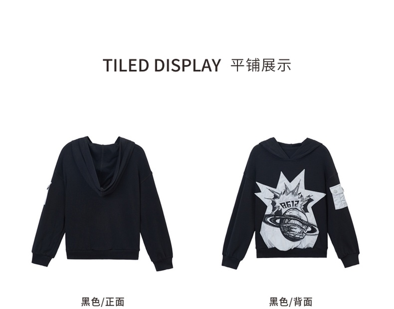 谜底连帽卫衣长袖2025年冬季新品H型连帽卫衣立体贴花女254MV1701