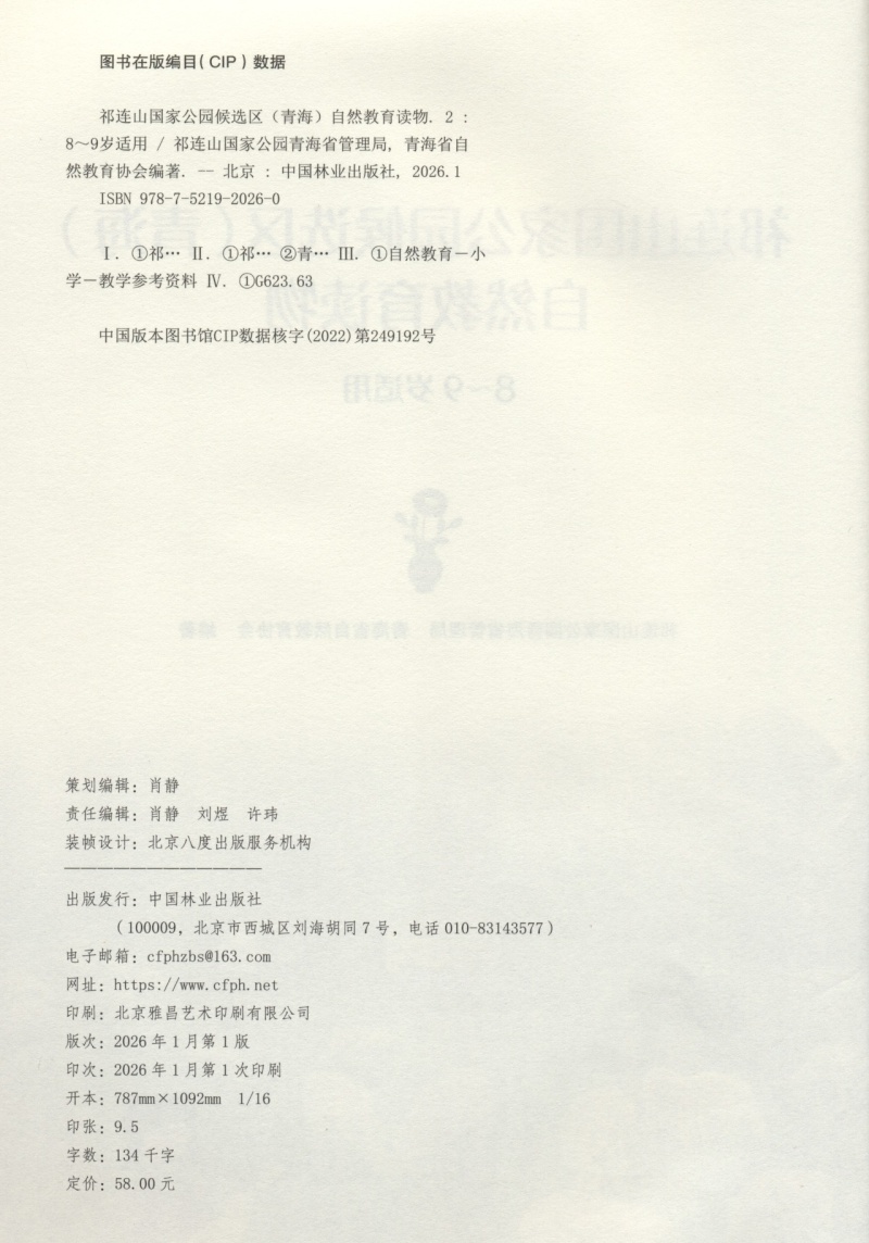 祁连山国家公园候选区(青海)自然教育读物(8~9岁适用) &2026