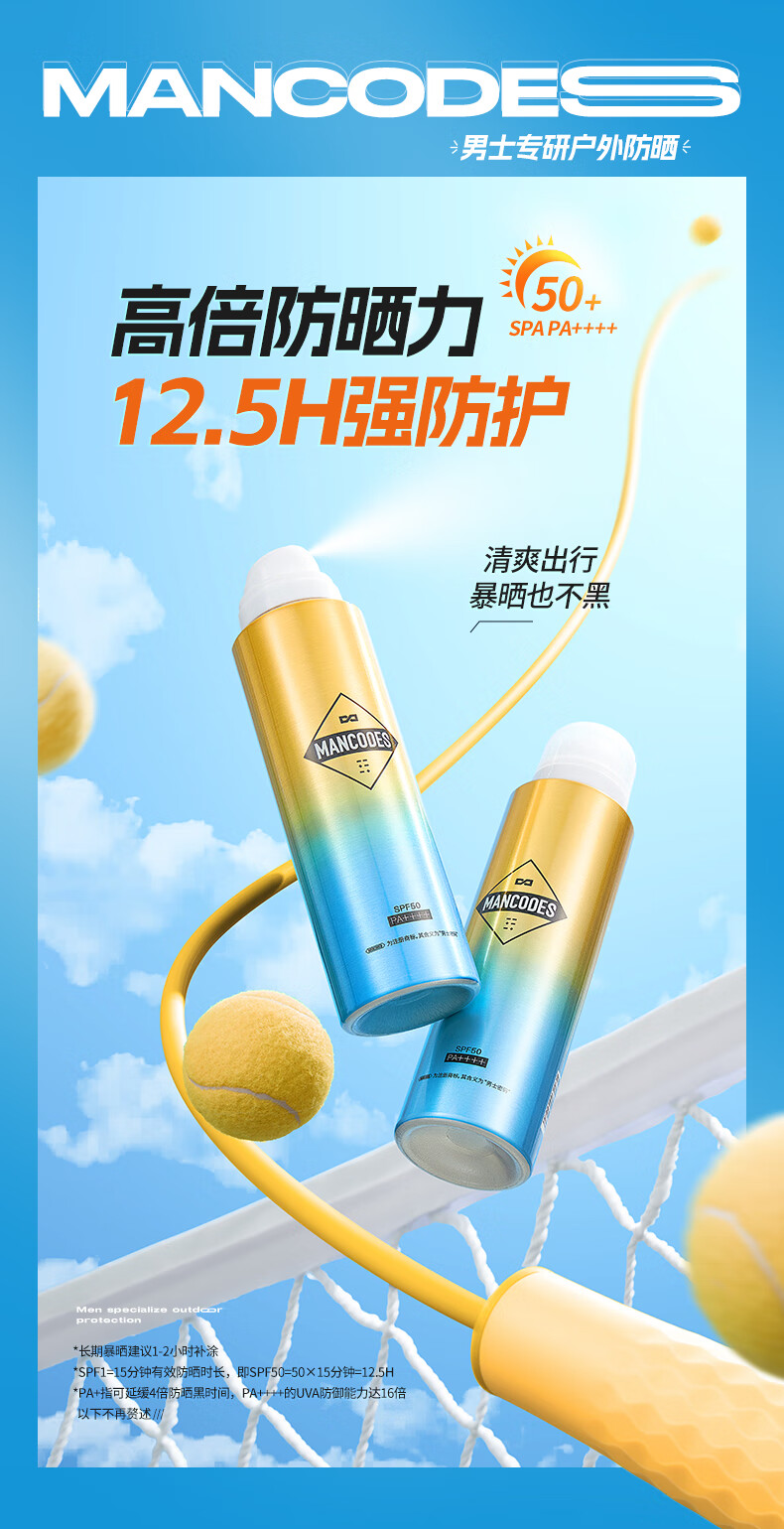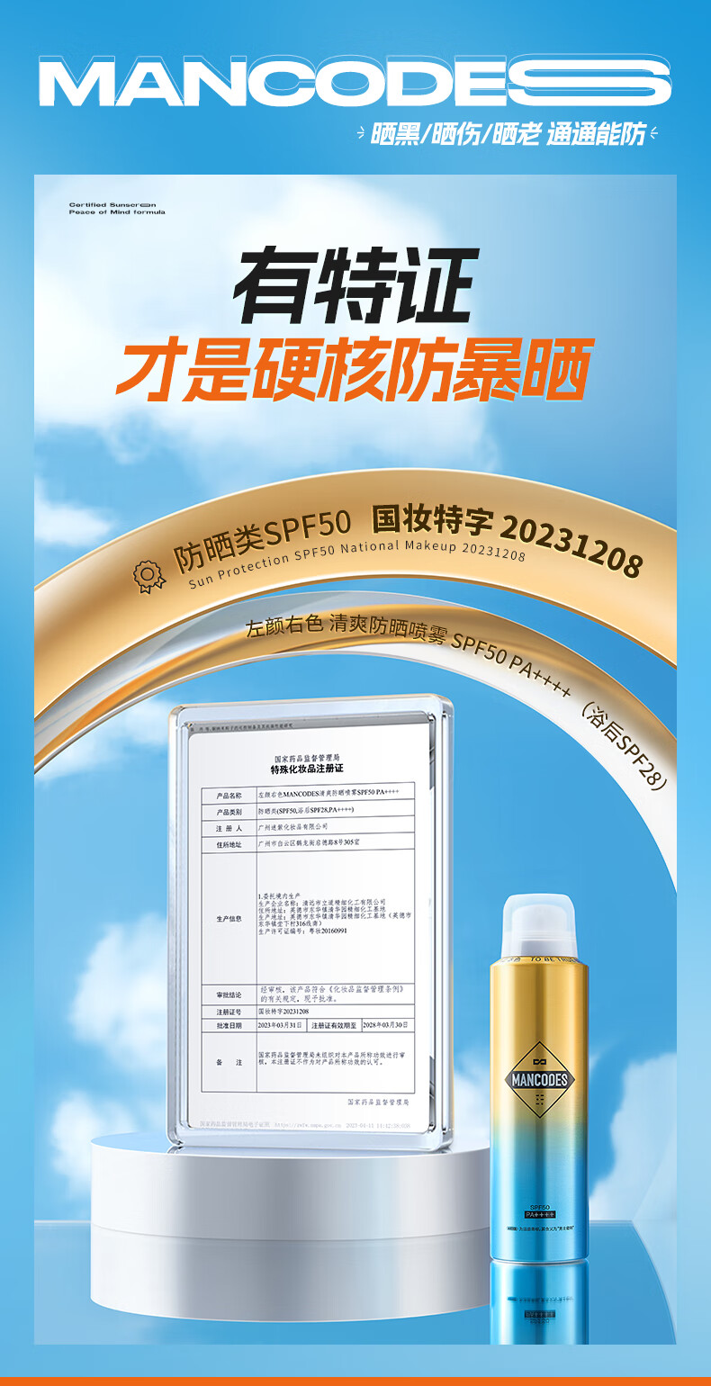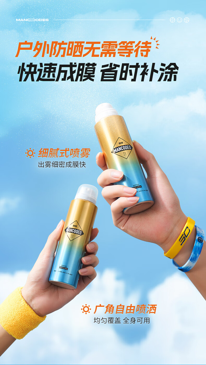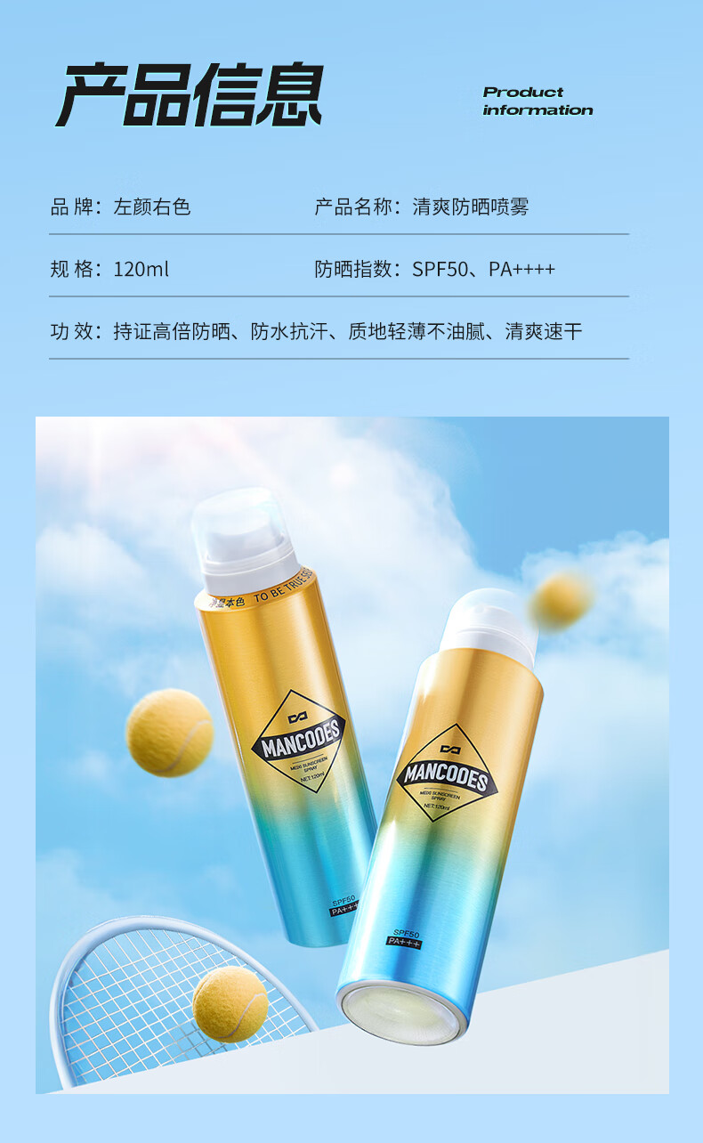 左颜右色MANCODES清爽防晒喷雾SPF50 PA++++ 120ml