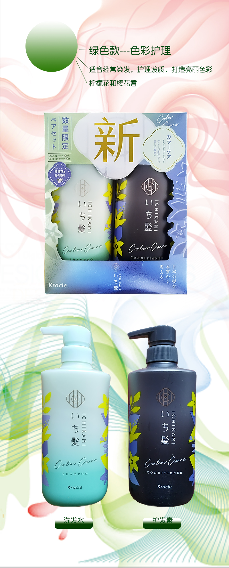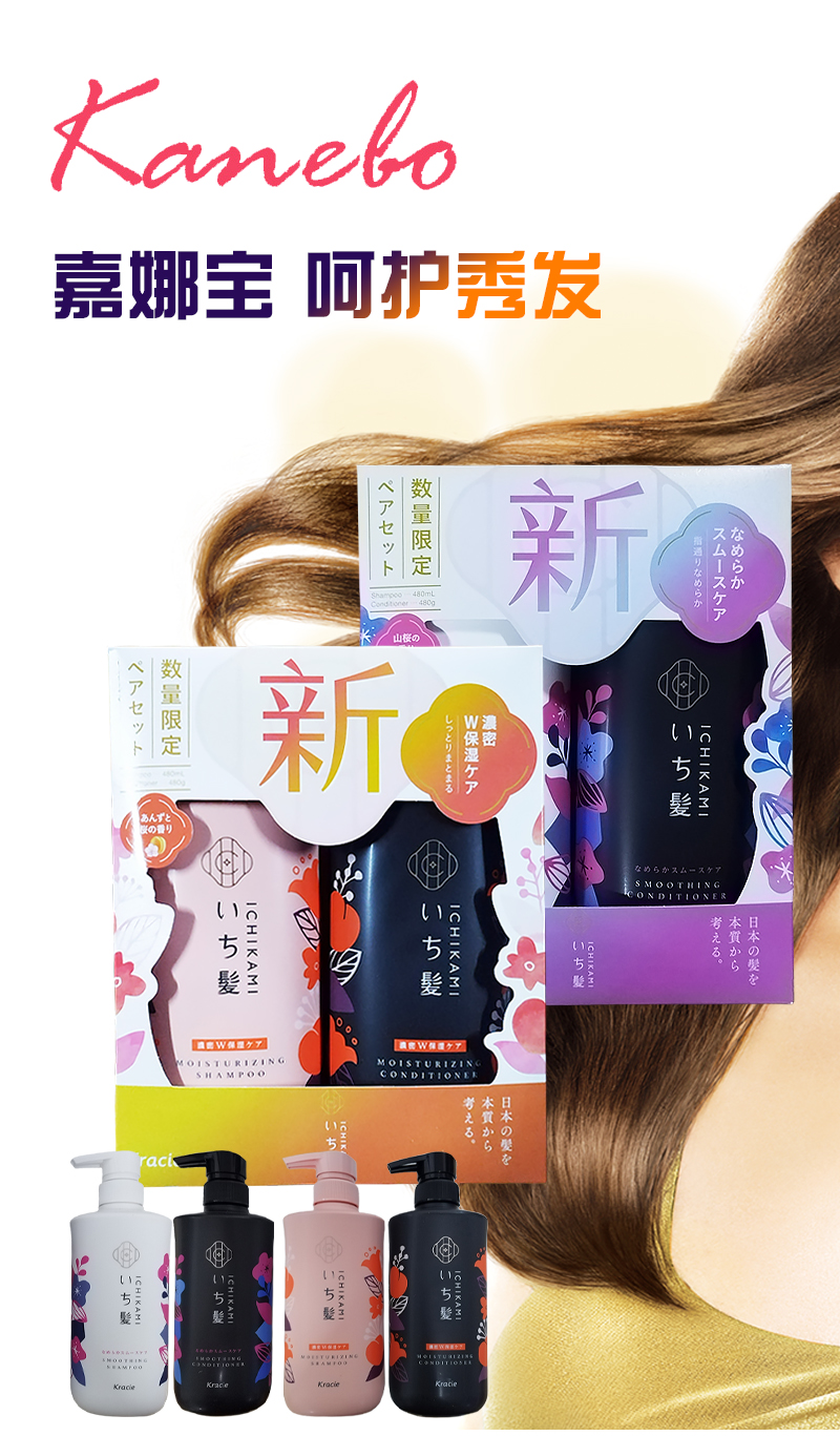 【保税仓】Kracie/嘉娜宝新版限定纯植物护色洗发水护发素480g+480ml/套