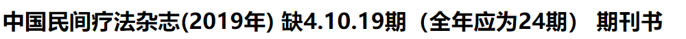 中国民间疗法杂志(2019年) 缺4.10.19期(全年应为24期) 期刊书