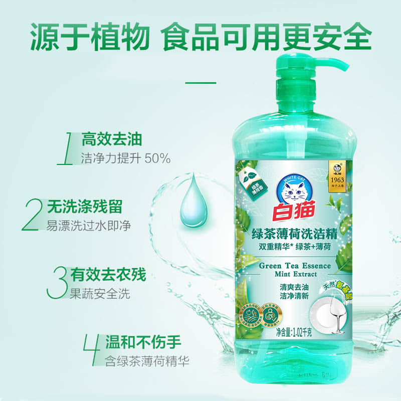 【甄选】白猫绿茶薄荷洗洁精1.02千克
