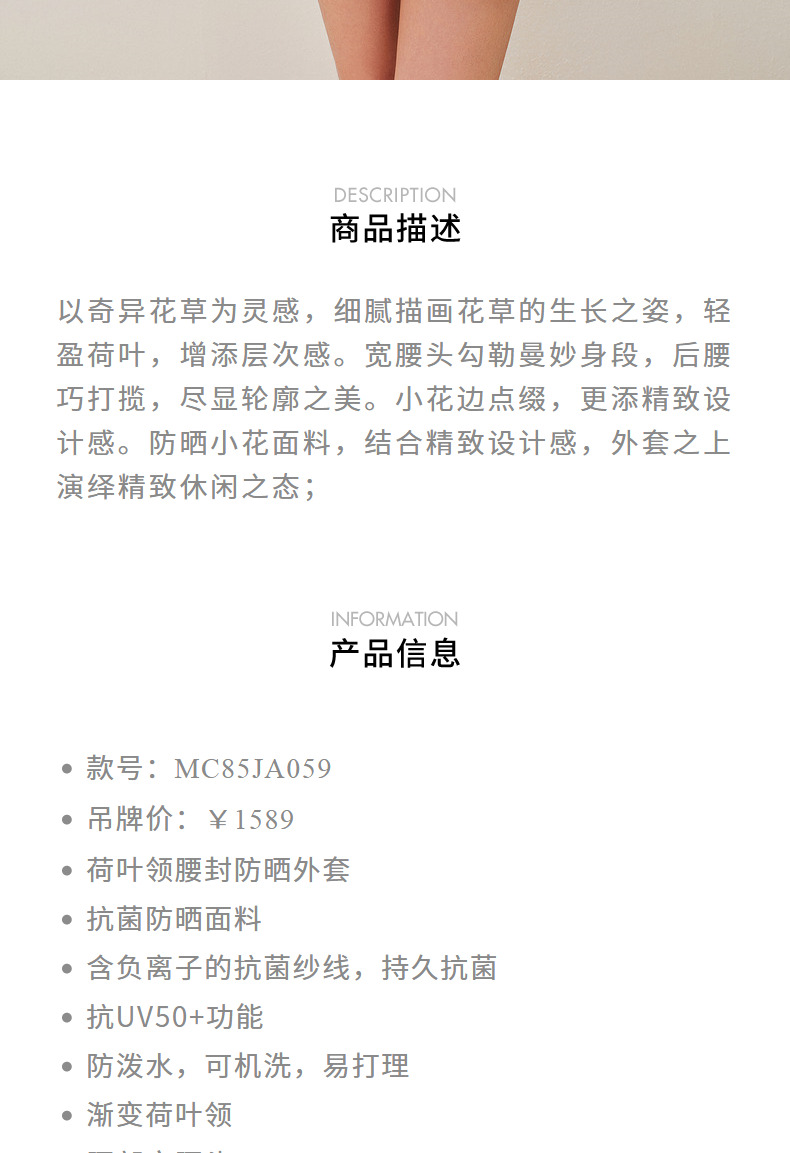 玛克门店发货:MAXRIENY精致休闲奇异花草防晒外套(货号:MC85JA059)