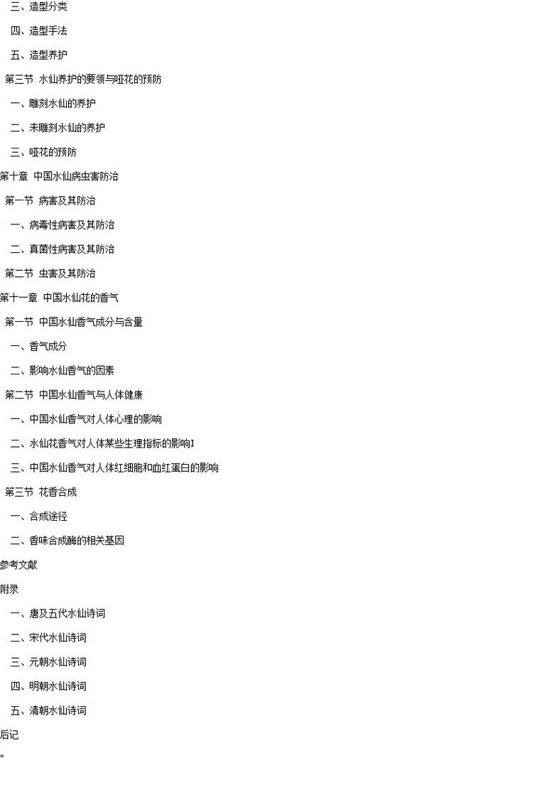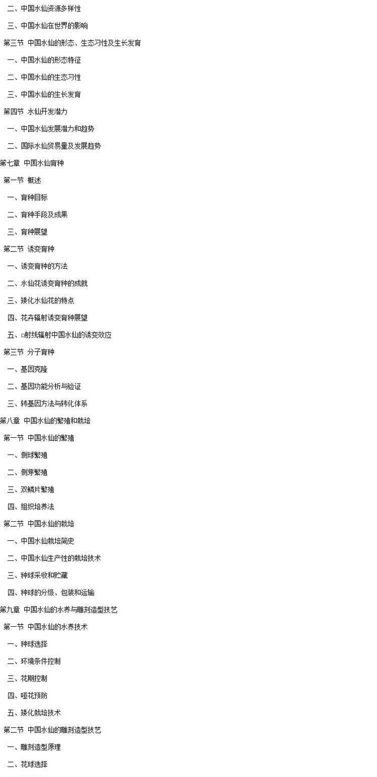 中国水仙 6911中国水仙起源 凌波仙子流韵 水仙属种质资源 水仙育种 繁殖和栽培 水养与雕刻造型技艺 水仙病虫害防治 中国林业出版