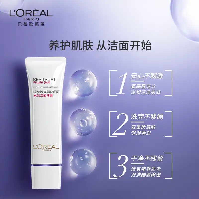 欧莱雅复颜玻尿酸水光洁面啫喱125ml(氨基酸 温和洁净 保湿淡纹)