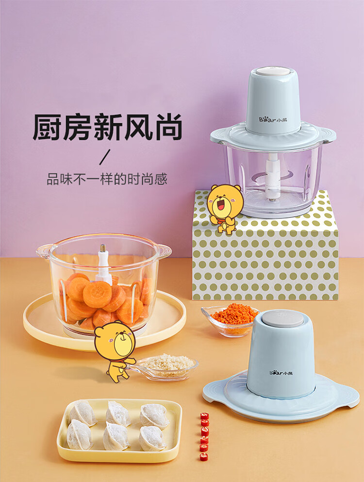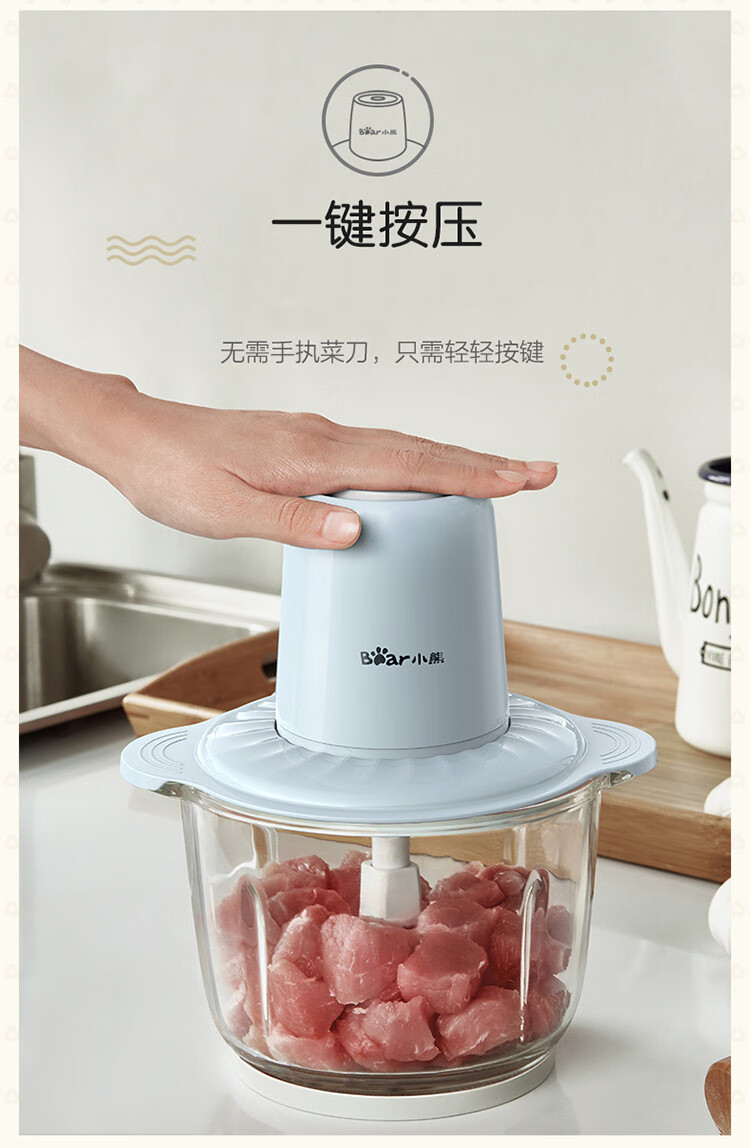 积分免费兑:小熊(Bear)绞肉机家用电动玻璃多能料理机绞馅机碎肉打肉机切菜搅拌机QSJ-C03B1 2L【ZMD安心系列】1.21-2.5期间订单,2.6开始发货