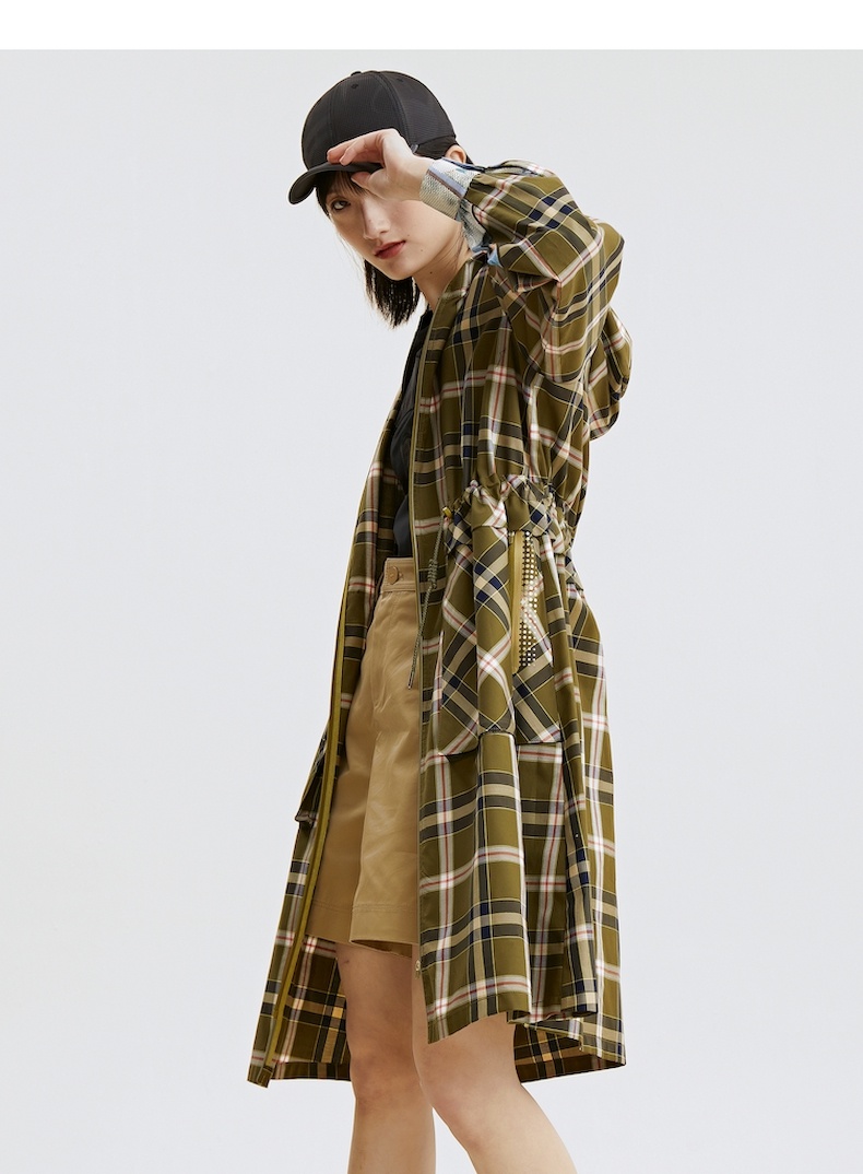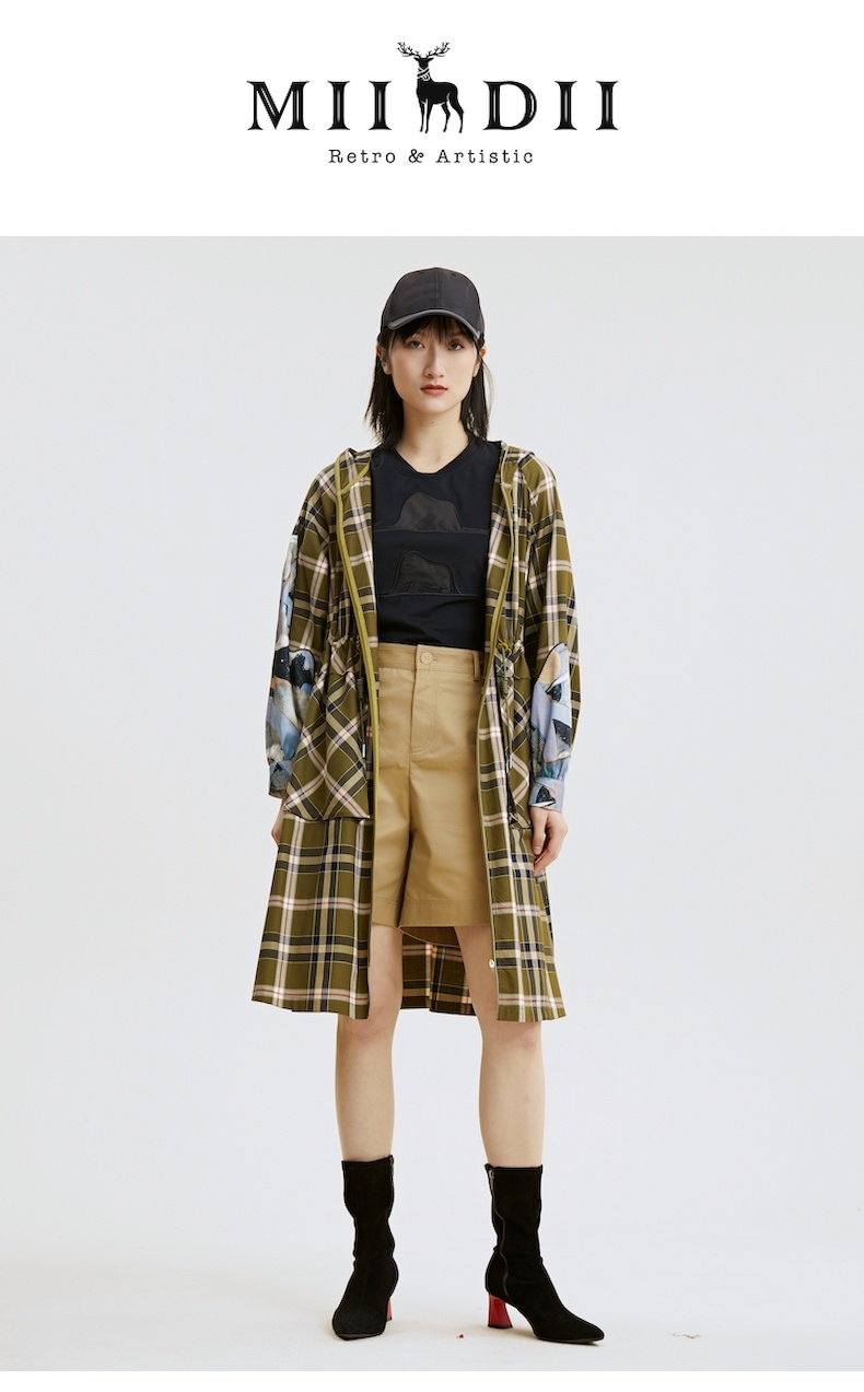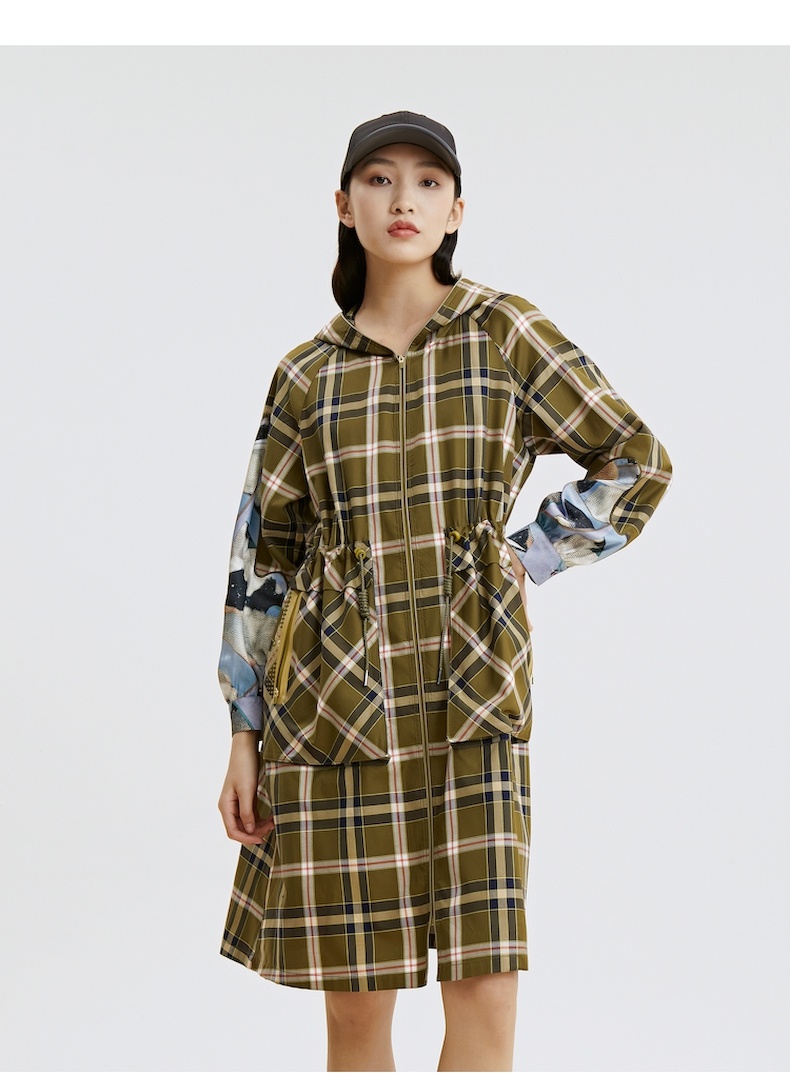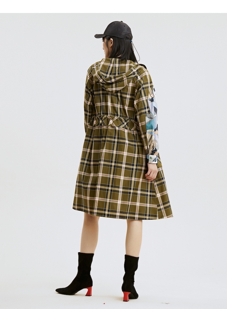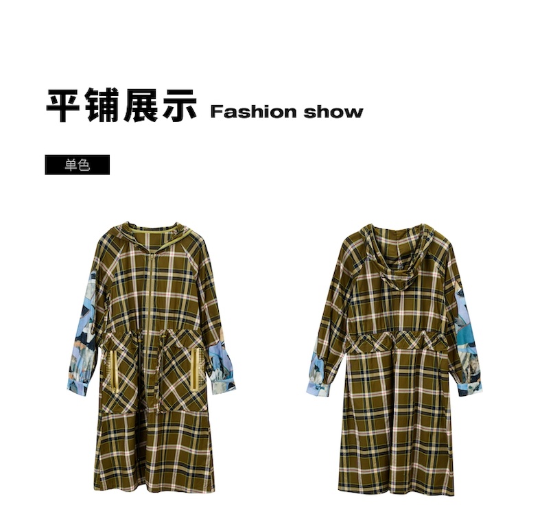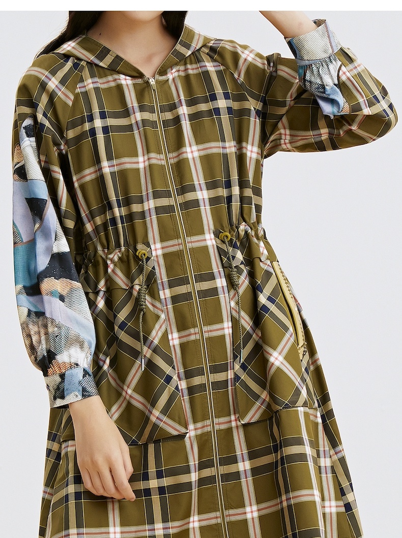 谜底2021秋季新款复古文艺休闲连帽纯棉格子连衣裙长袖213ML1706