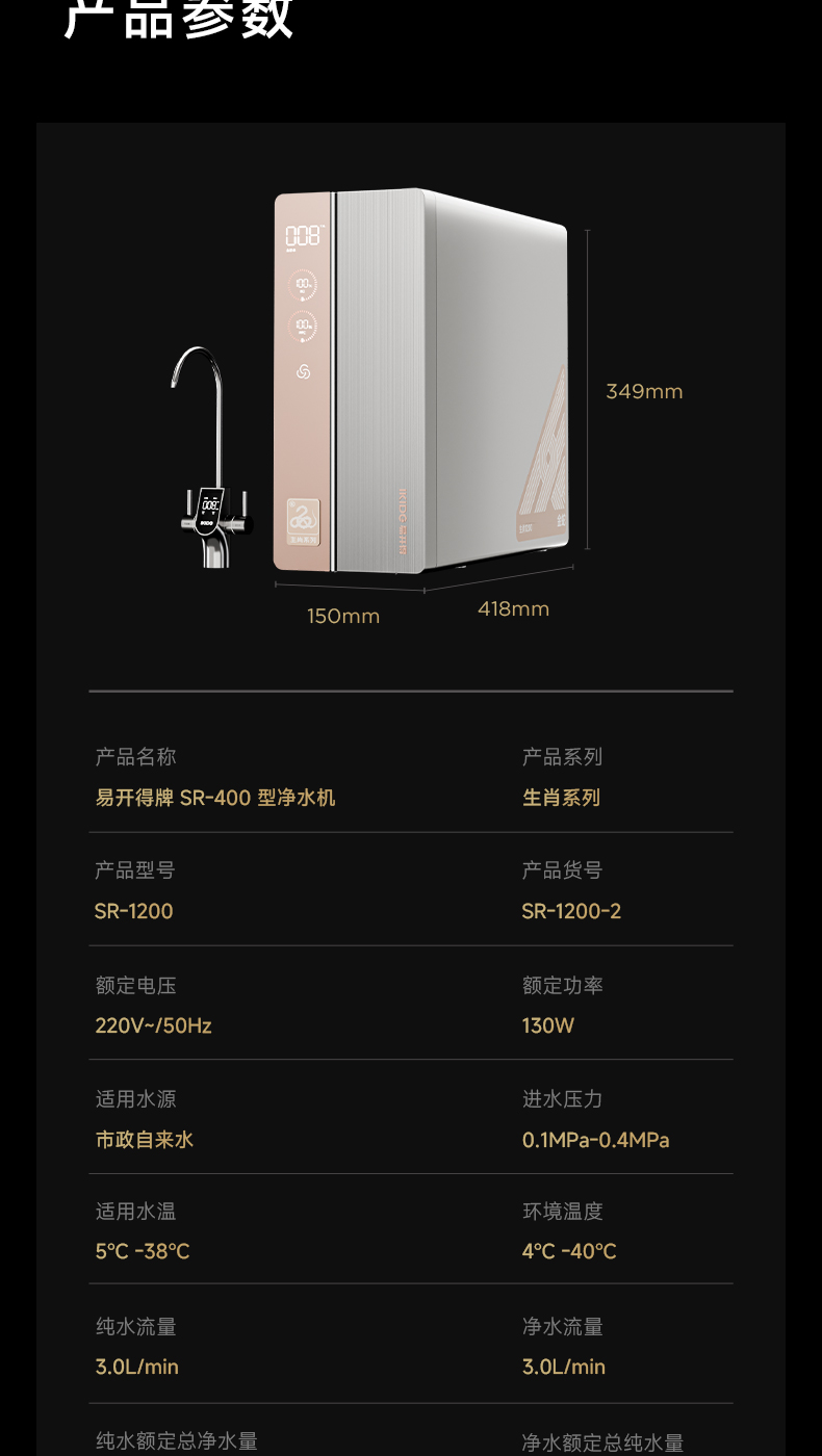 易开得生肖系列金蛇1200G家用净水器厨下RO反渗透净饮机
